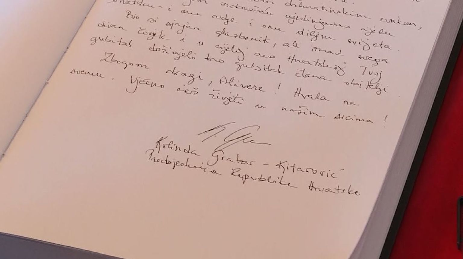 Predsjednica Grabar-Kitarović pisala u Knjigu žalosti za Olivera Dragojevića (Foto: Dnevnik.hr) - 3 Foto: DNEVNIK.hr -