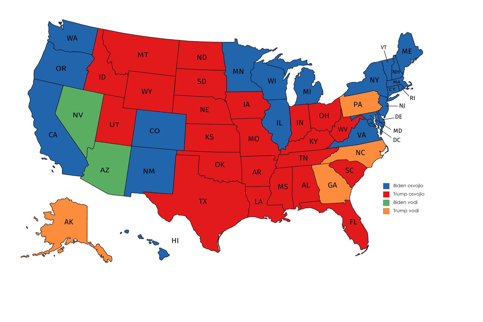 Privremeni rezultati predsjedničkih izbora u SAD-u Foto: DNEVNIK.hr -