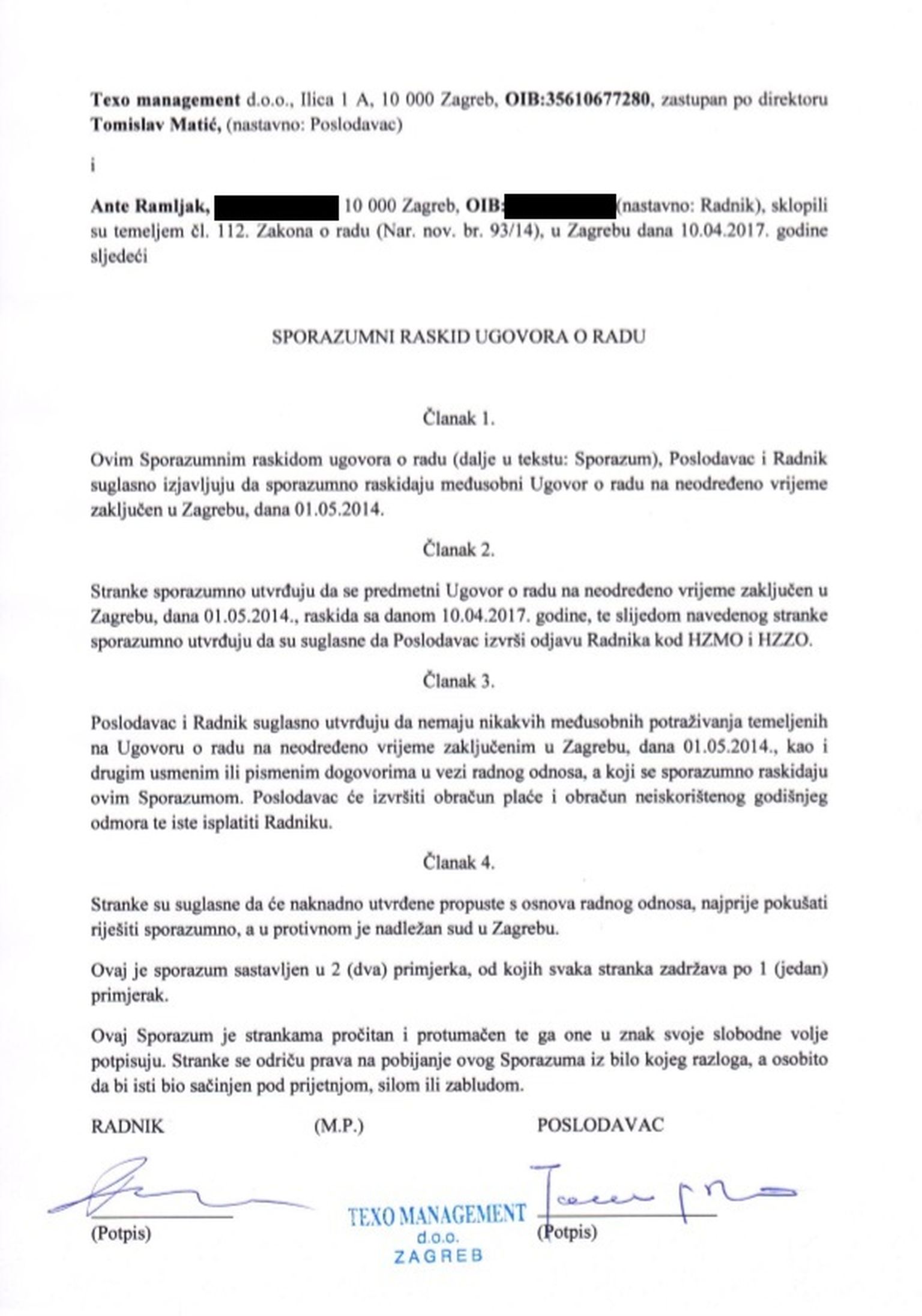 Ugovor Ante Ramljaka za travanj (Foto: Dnevnik.hr) Foto: DNEVNIK.hr -