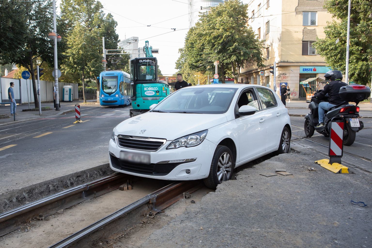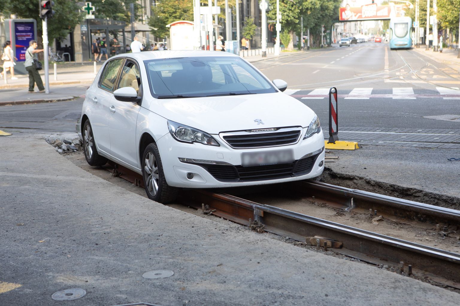 • Automobil zapeo na tramvajskoj pruzi koja se obnavlja - 2 Foto: Zeljko Puhovski / CROPIX
