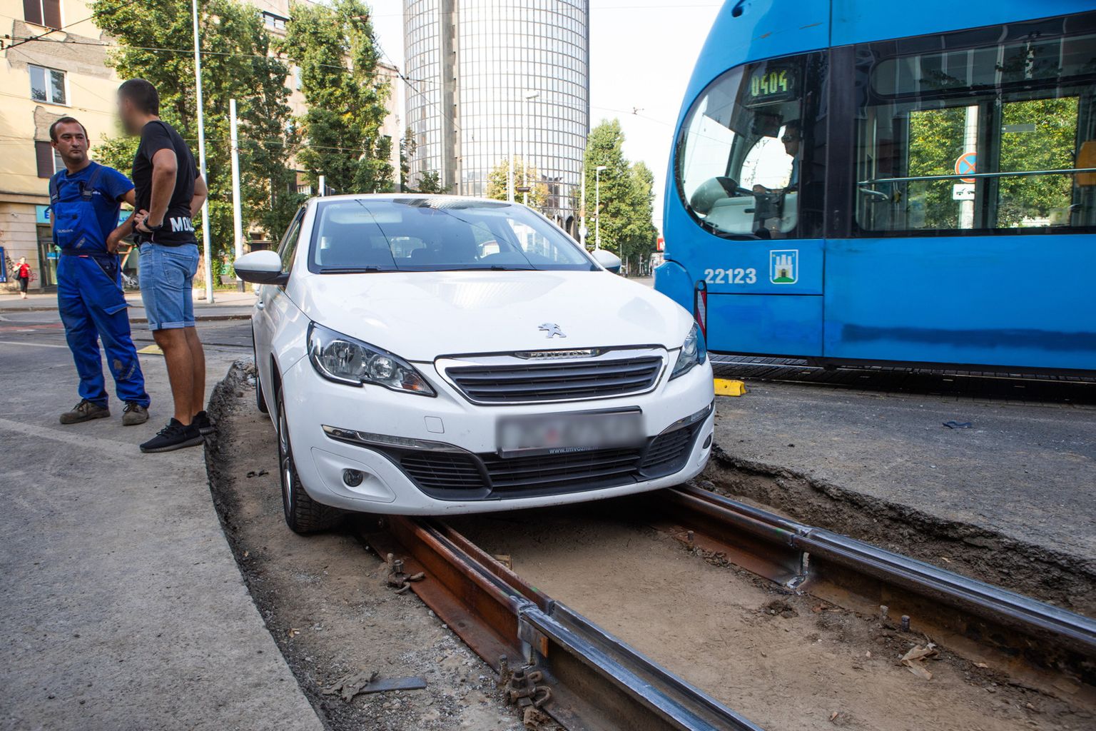 • Automobil zapeo na tramvajskoj pruzi koja se obnavlja - 3 Foto: Zeljko Puhovski / CROPIX