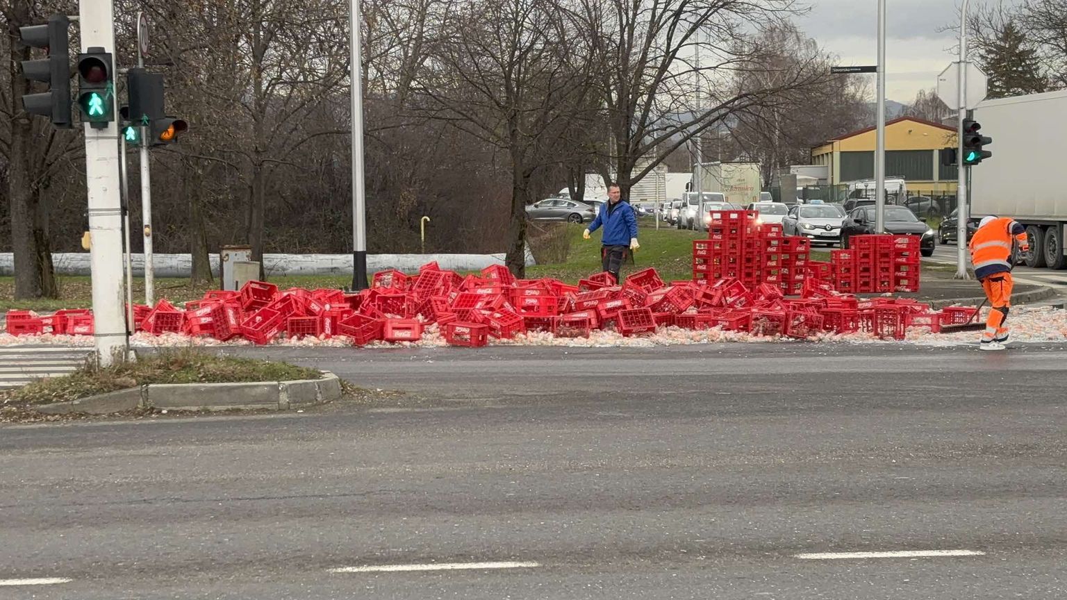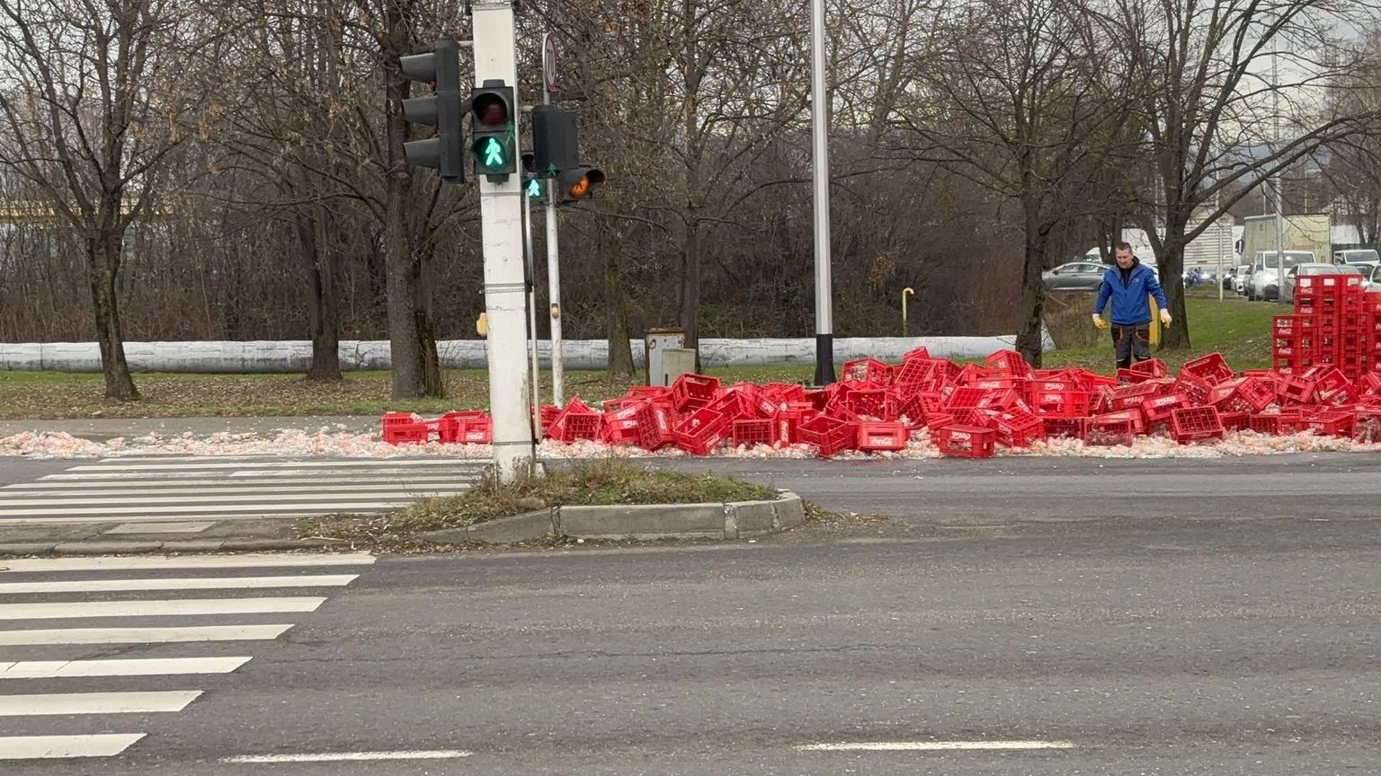 Gajbe sa staklenim bocama ispale s kamiona u Slavonskoj Aveniji - 4 Foto: DNEVNIK.hr -