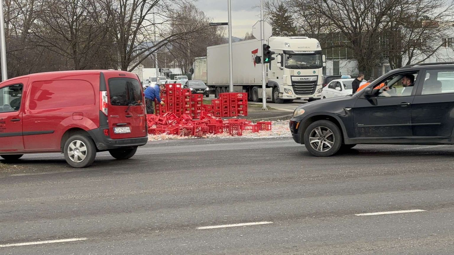 Gajbe sa staklenim bocama ispale s kamiona u Slavonskoj Aveniji - 3 Foto: DNEVNIK.hr -