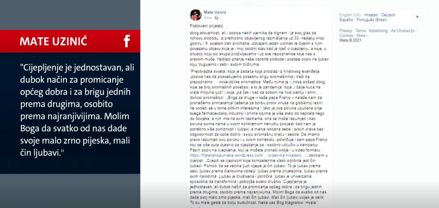 Objava Mate Uzinića Foto: DNEVNIK.hr -