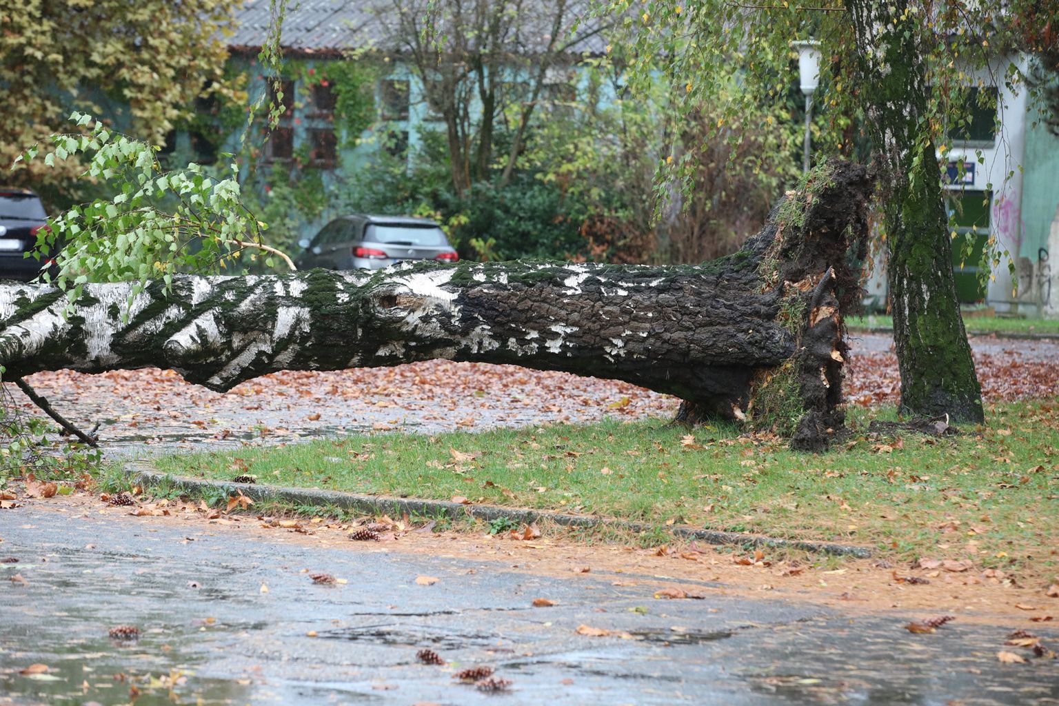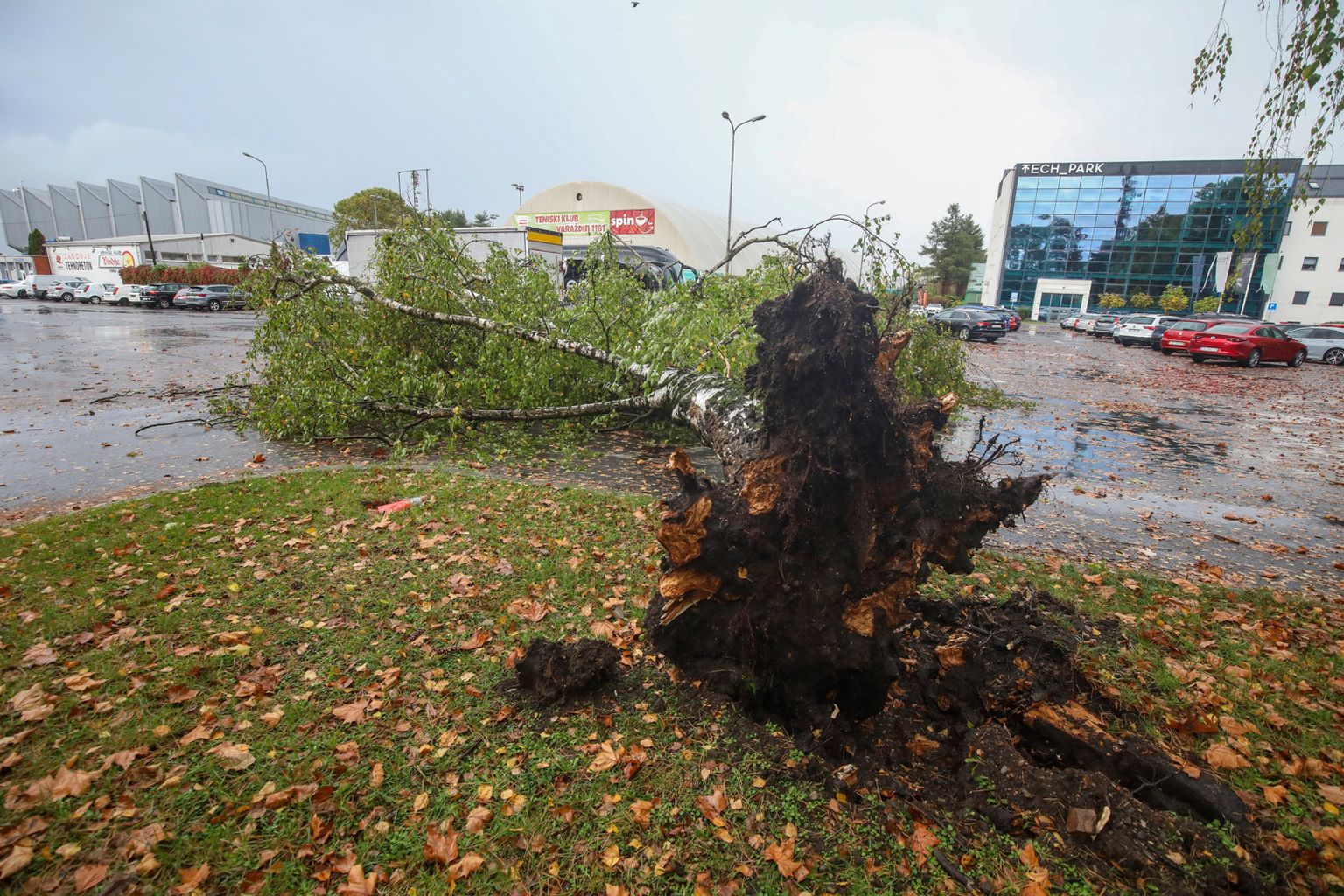 • Jak vjetar srušio je drvo breze na parkiralištu u Varaždinu Foto: Zeljko Hajdinjak/Cropix