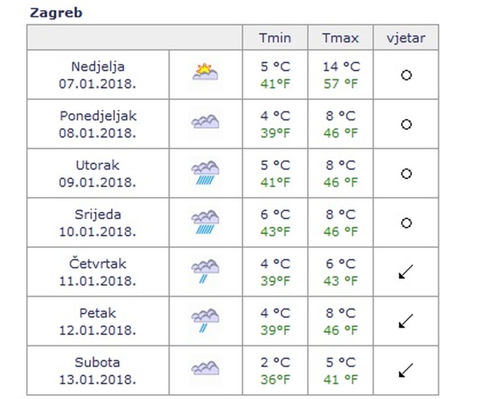 Zagreb idućeg tjedna (Izvor: DHMZ) -