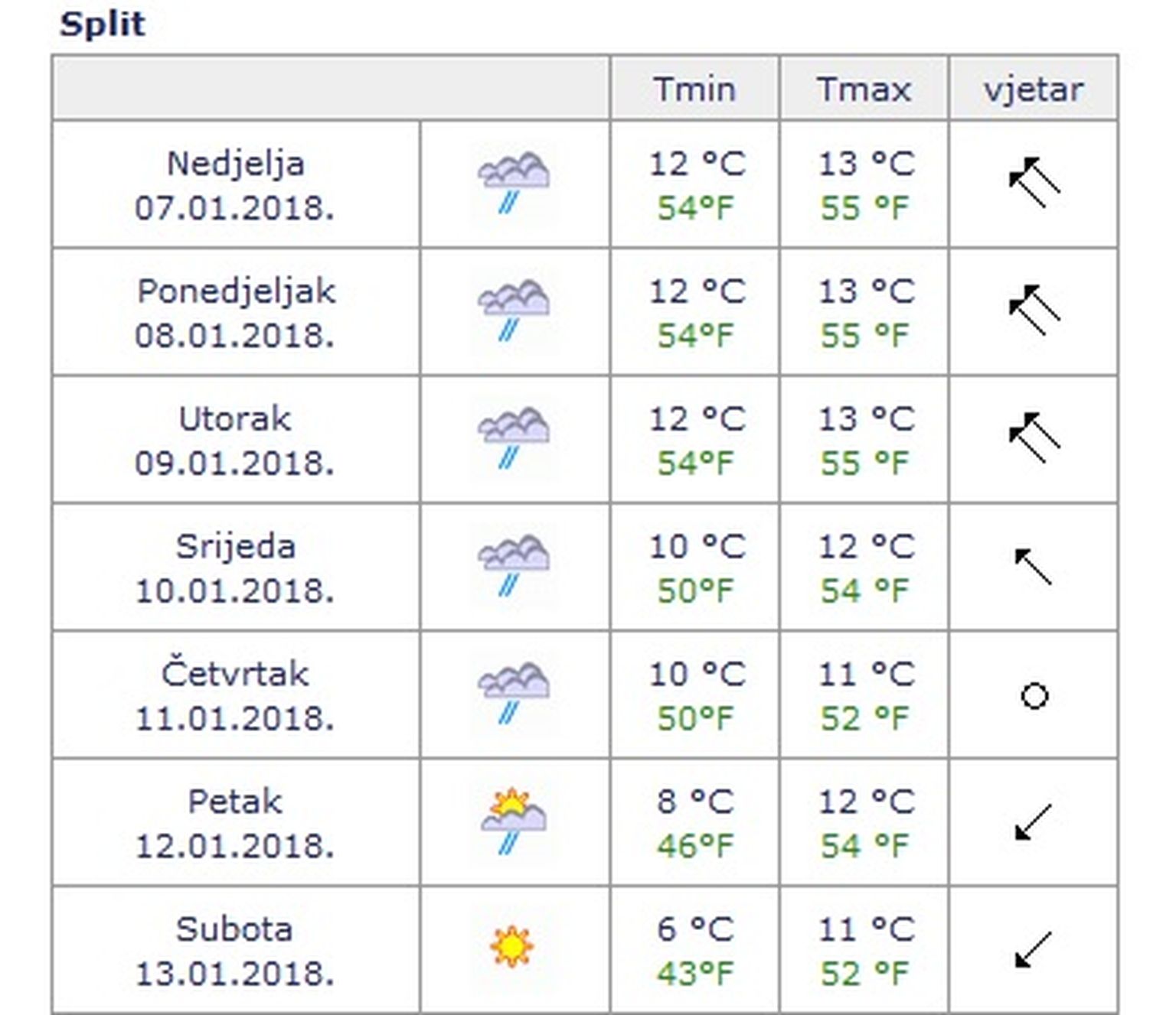 Split idućeg tjedna (Izvor: DHMZ) -