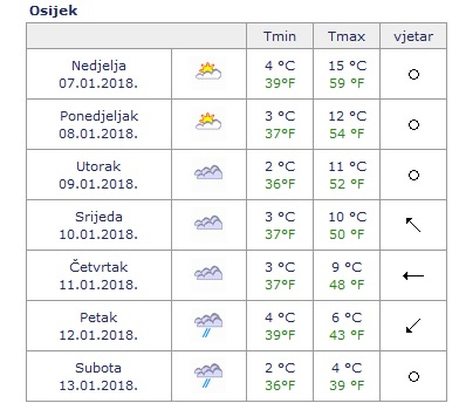 Osijek idućeg tjedna (Izvor: DHMZ) -