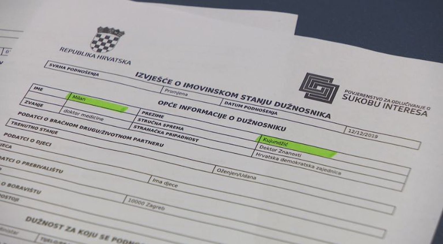 Imovinska kartica Milana Kujundžića Foto: Vijesti u 17 -