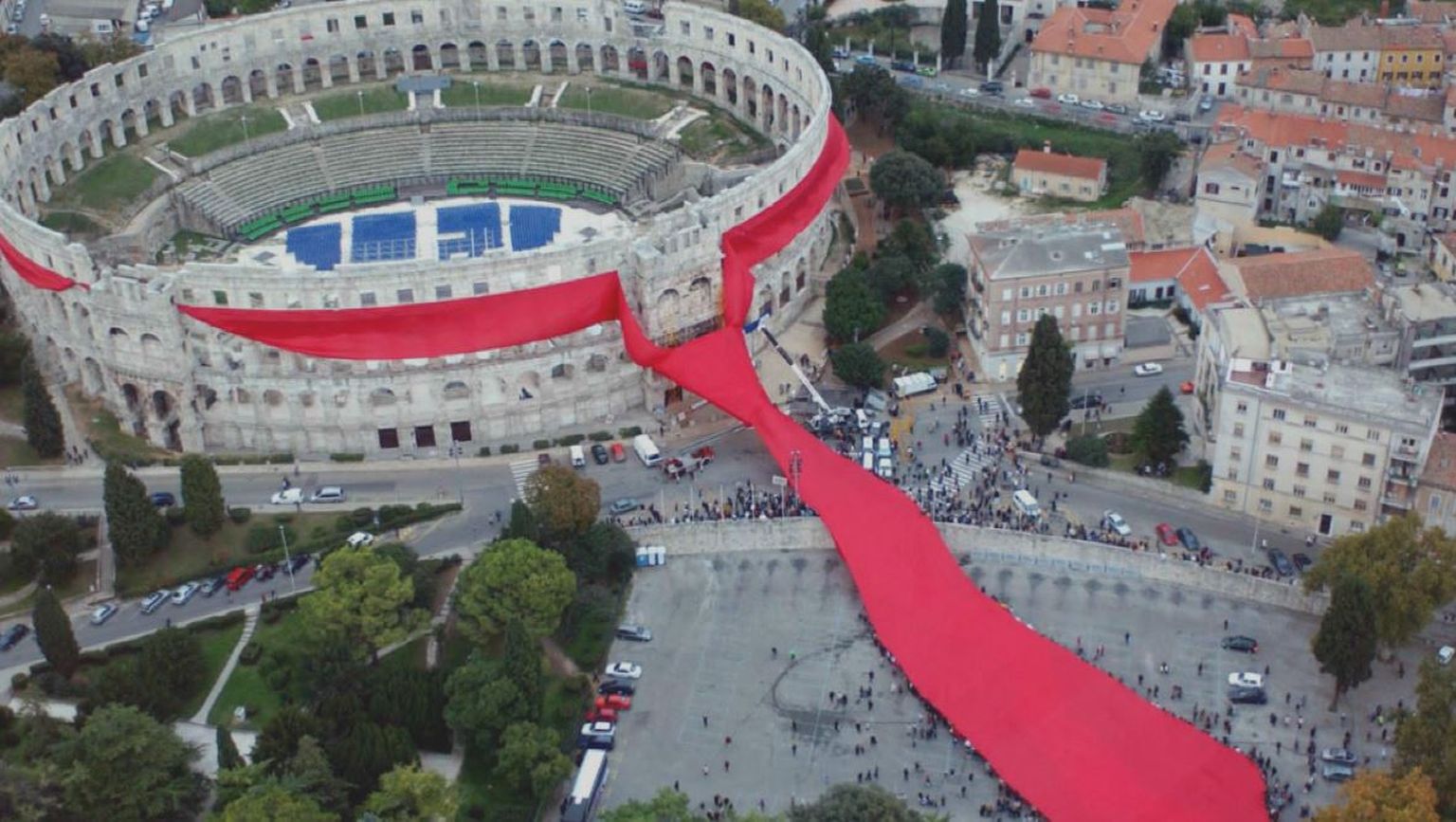 • Kravata oko amfiteatra koja je oborila Guinessov rekord (Foto: Dnevnik.hr) Foto: DNEVNIK.hr