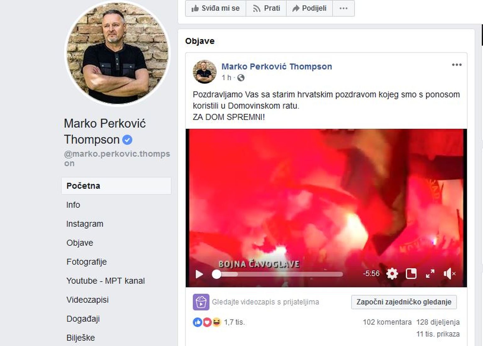 Facebook stranica M. P. Thompsona (Screenshot: Facebook) -