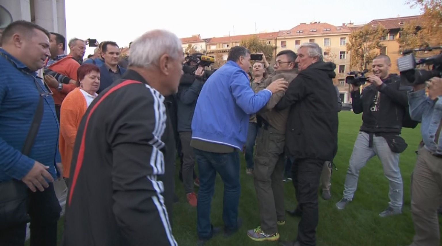 Naguravanje s gradonačelnikovom pratnjom na otvorenju Trga žrtava fašizma (Dnevnik.hr) -