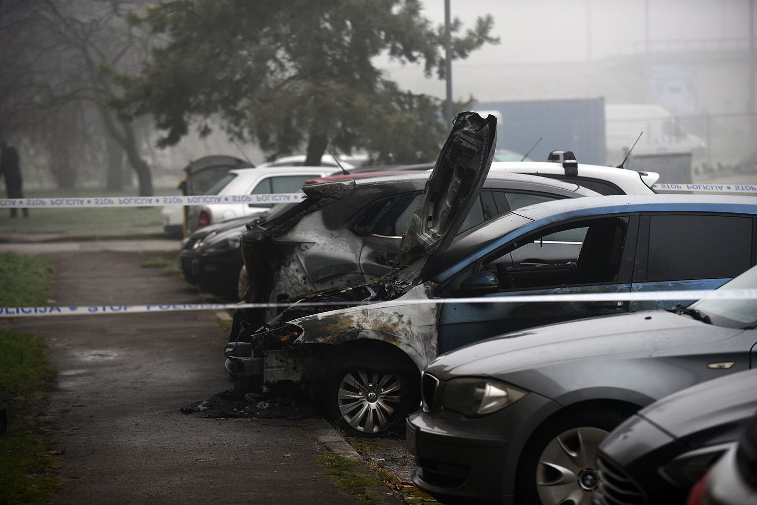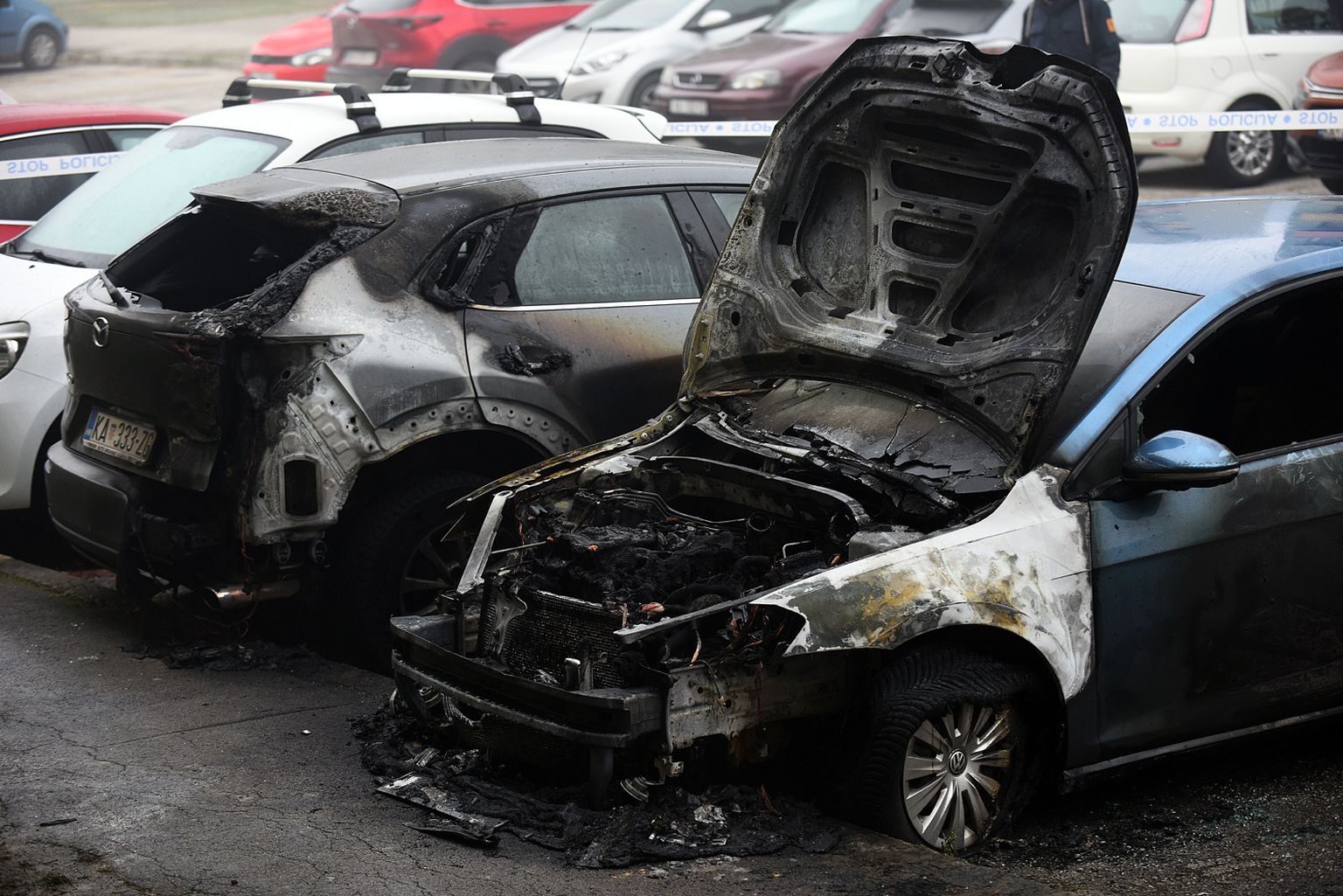 FOTO Na parkingu u Karlovcu gorio automobil, oštećeno više vozila