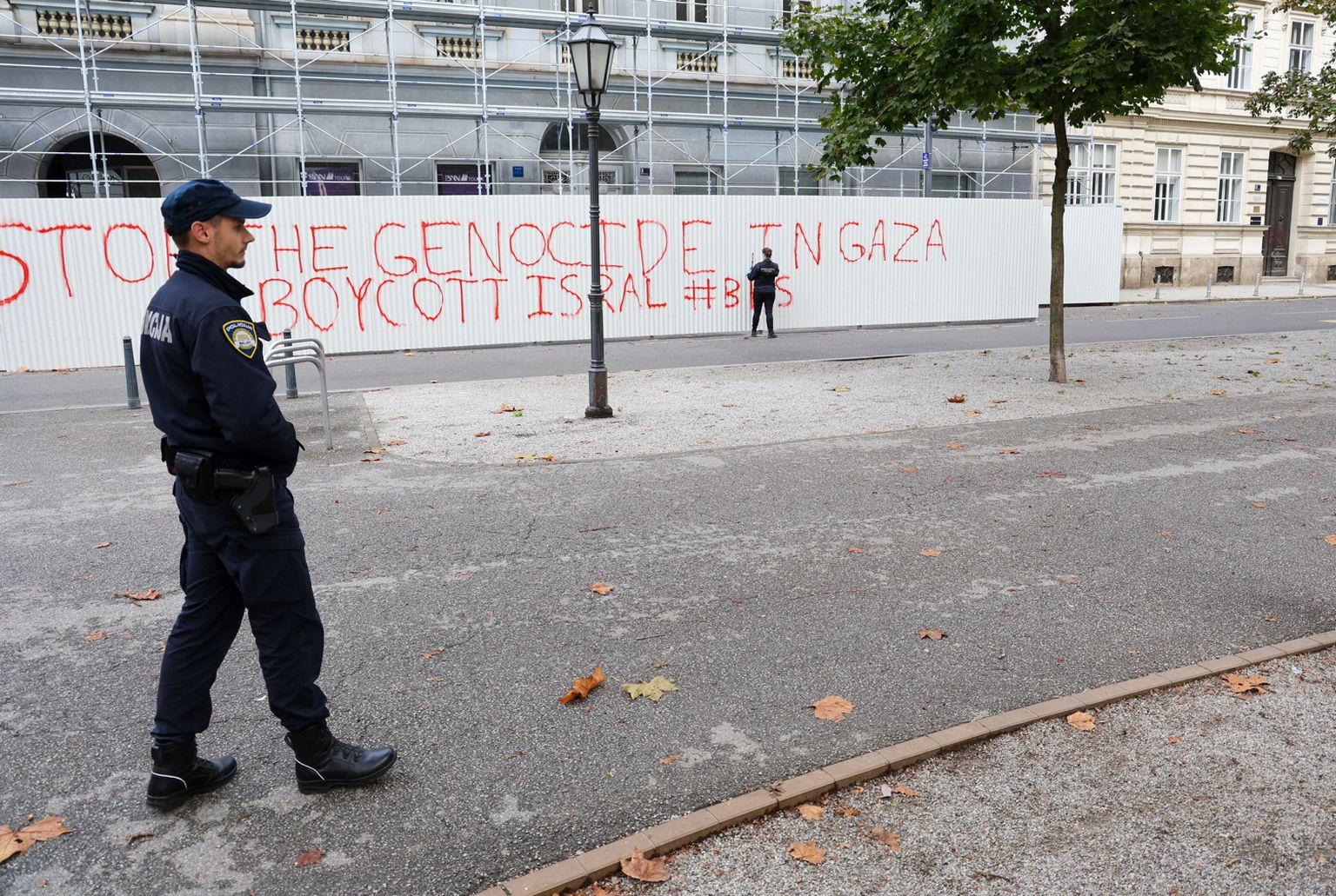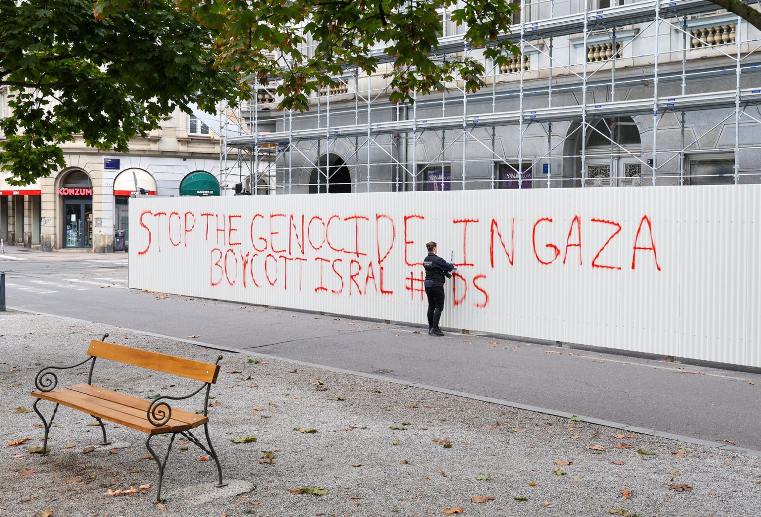 Na Zrinjevcu osvanuo grafit podrške Palestincima: "Zaustavite genocid u Gazi, bojkotirajte Izrael"