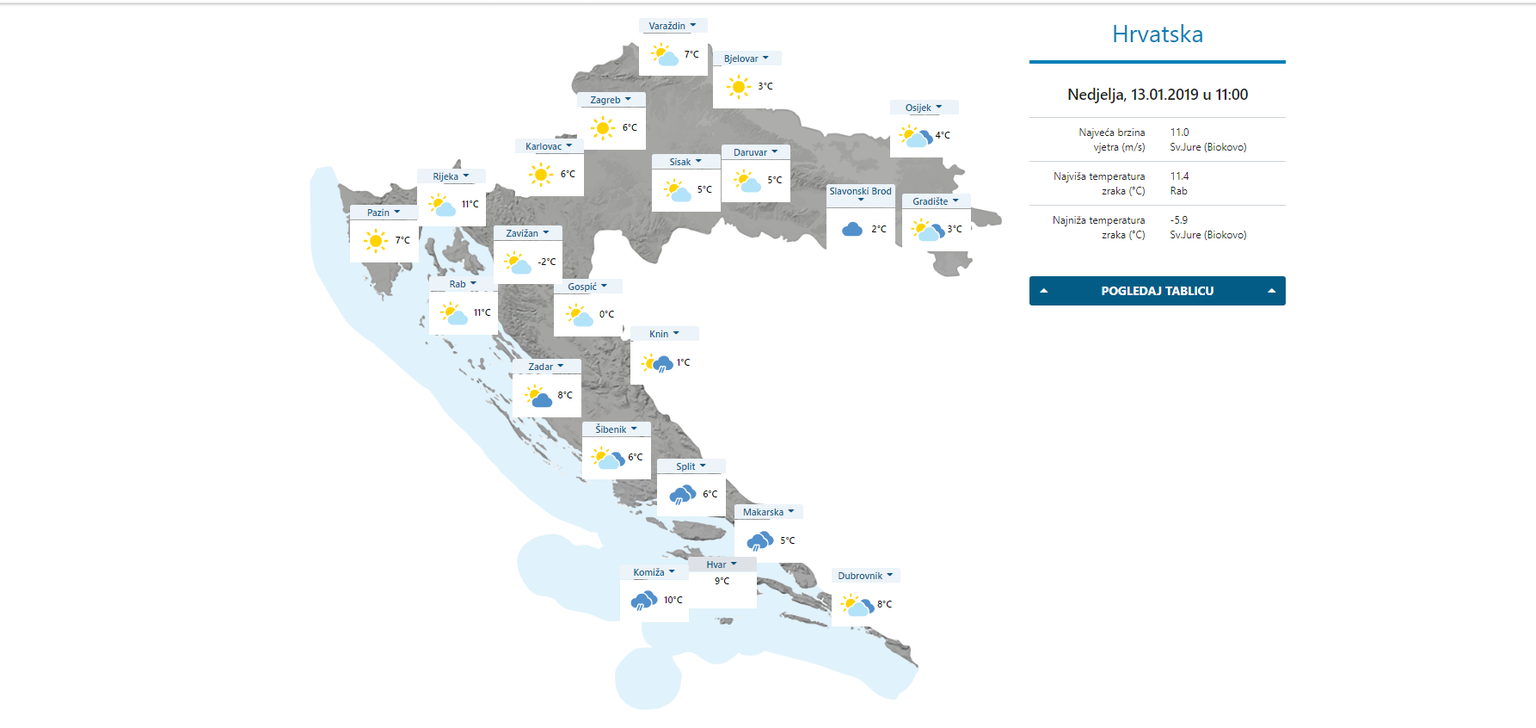 Trenutna prognoza DHMZ-a (Foto: Screenshot) Foto: DHMZ -