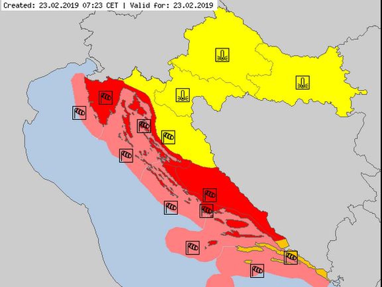 • Crveni alarm na obali (Screenshot: Meteoalarm.eu)