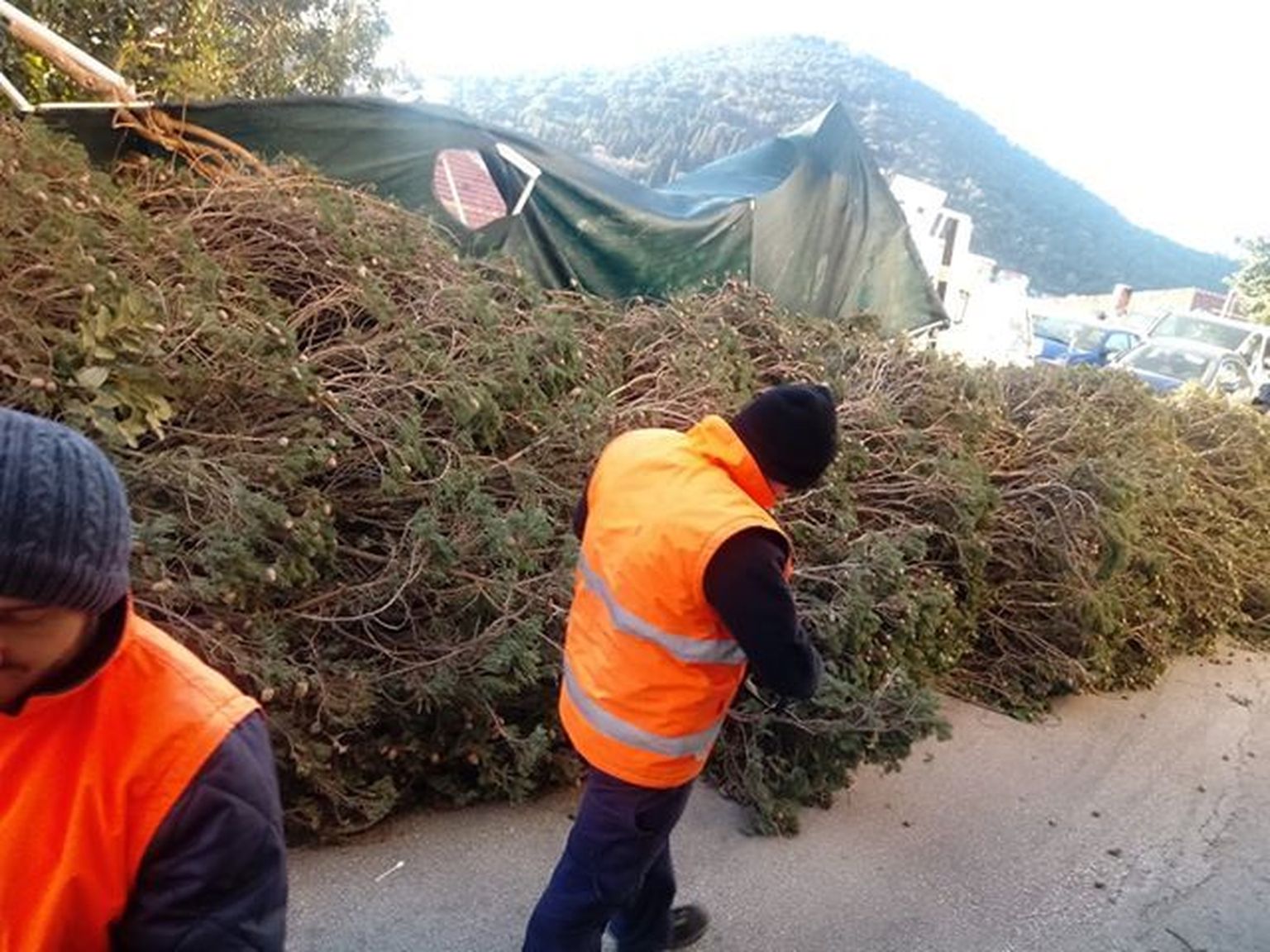 Pogledajte kako je pobješnjeli vjetar u Splitu iščupao veliko stablo bora i bacio ga na šleper u vožnji