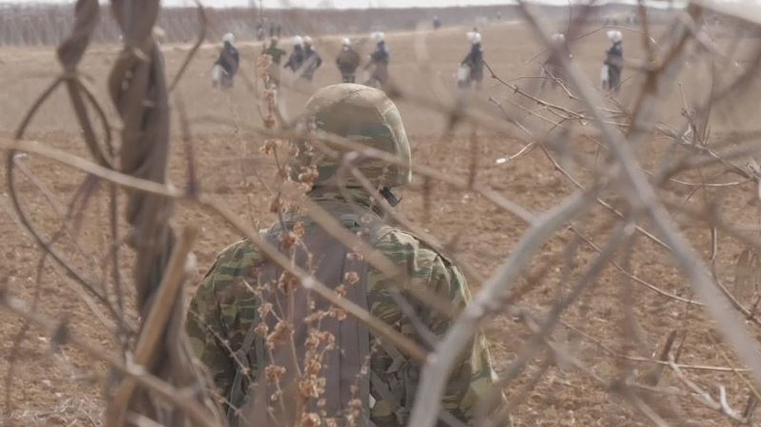 • Vojnik u polju promatra migrante Foto: DNEVNIK.hr