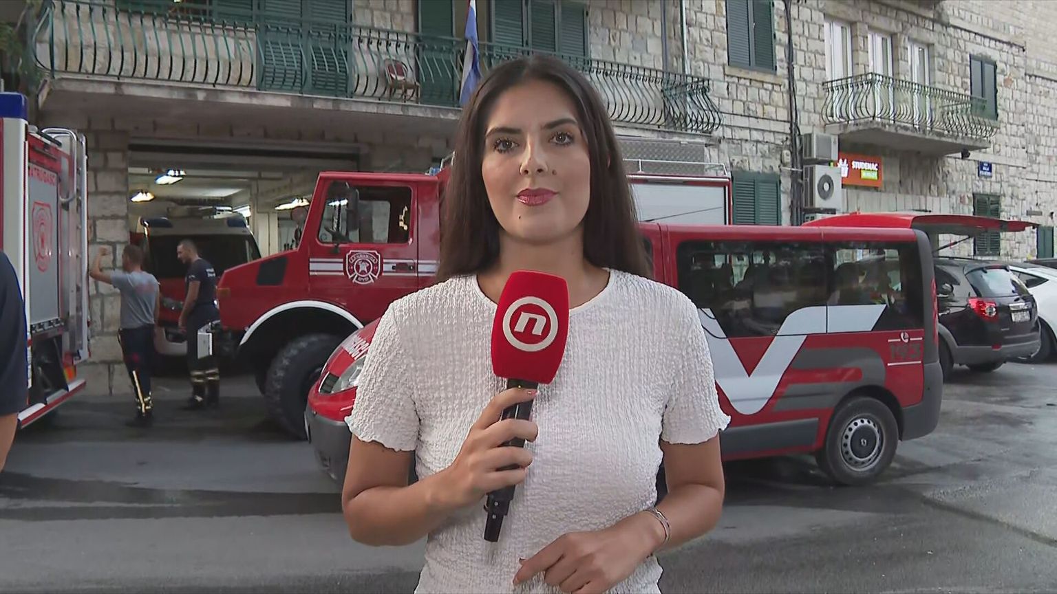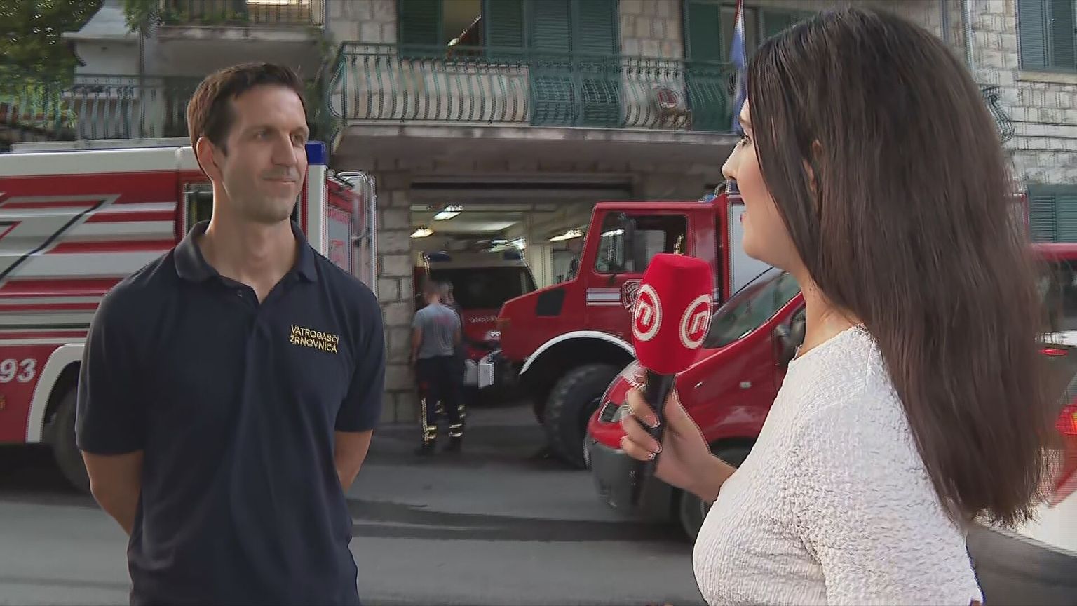 • Milan Barbarić, predsjednik DVD-a Žrnovnica i Bruna Papić, reporterka Dnevnika Nove TV Foto: Dnevnik Nove TV