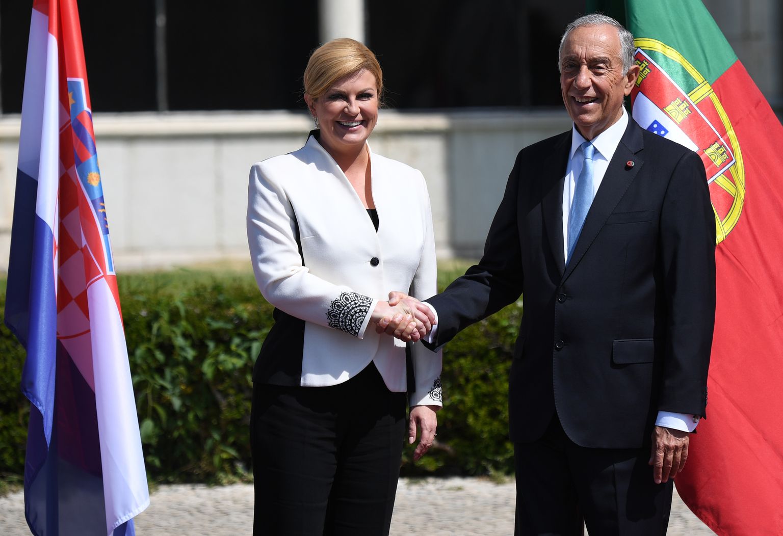 • Predsjednica Grabar-Kitarović i portugalski predsjednik Marcelo Rebelo de Sousa (Foto: AFP) Foto: Afp