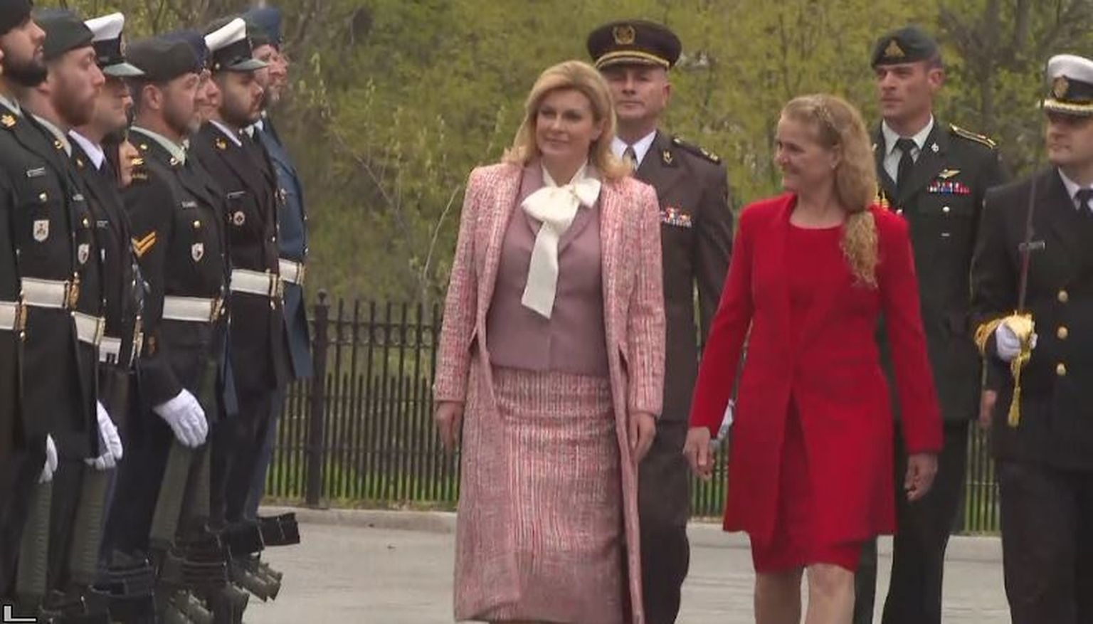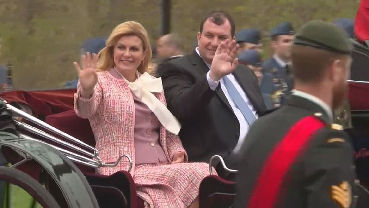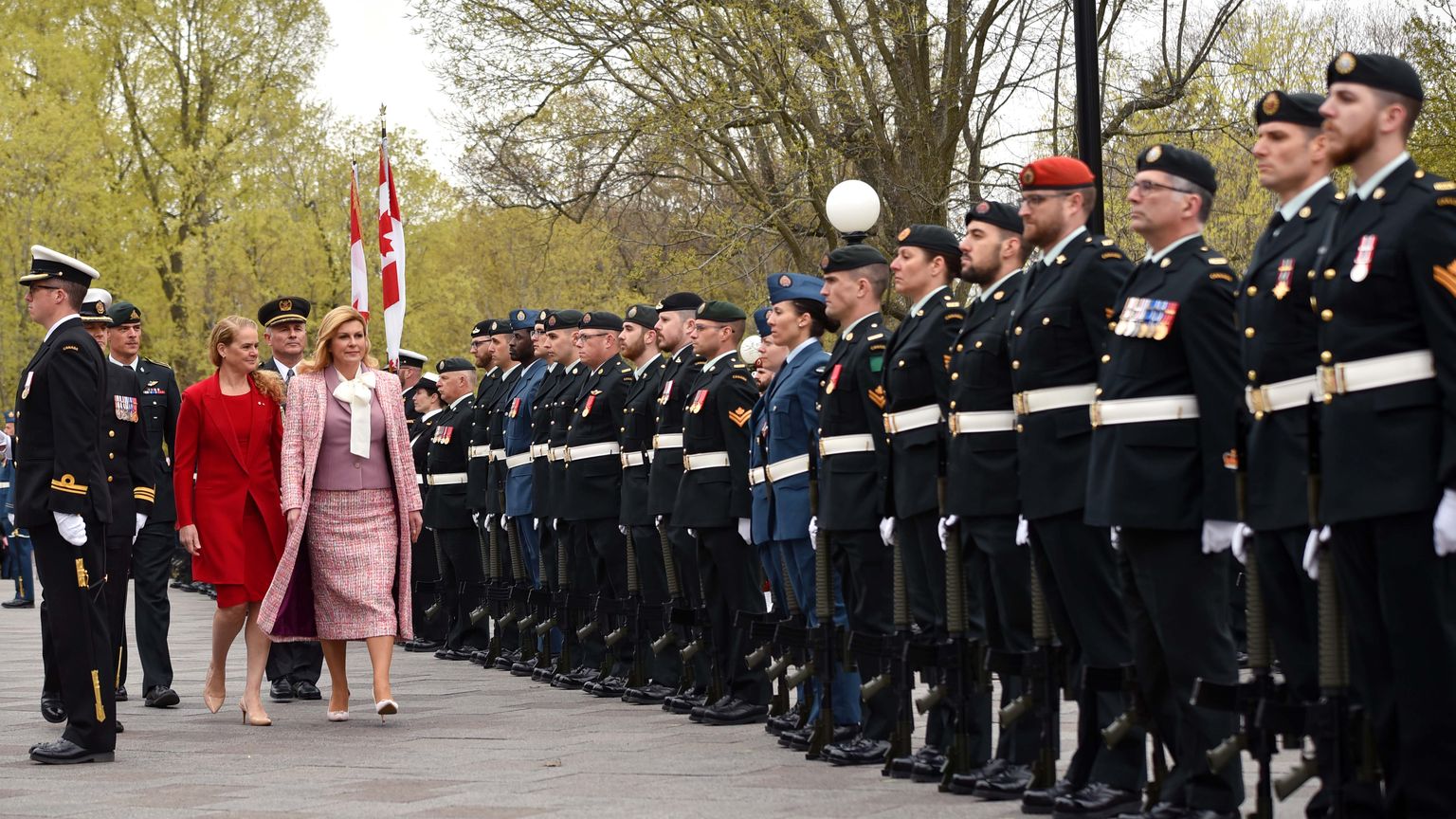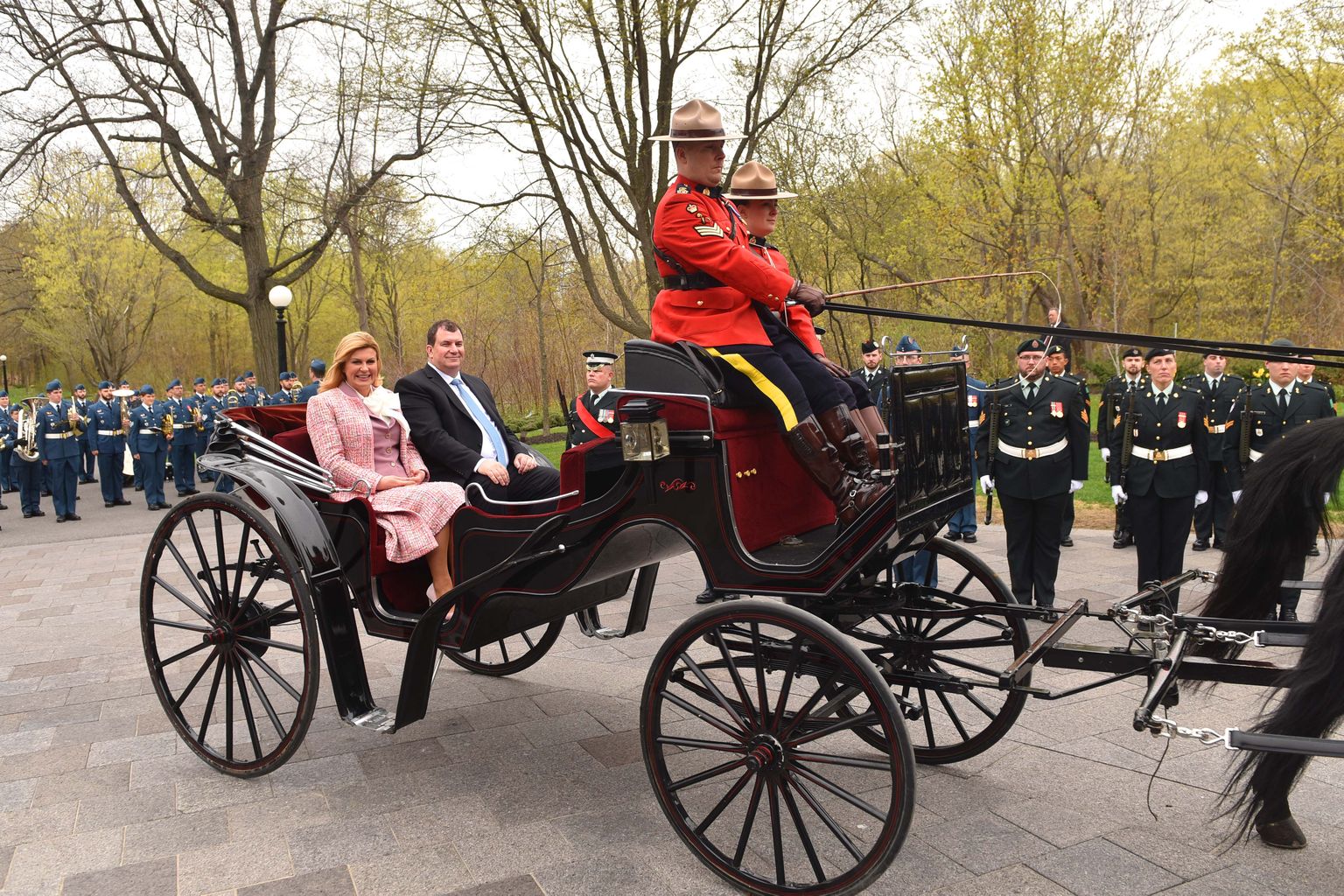Predsjednica pred palaču kanadske guvernerke stigla u kočiji te zajedno sa suprugom zasadila plavu bukvu kao znak prijateljstva