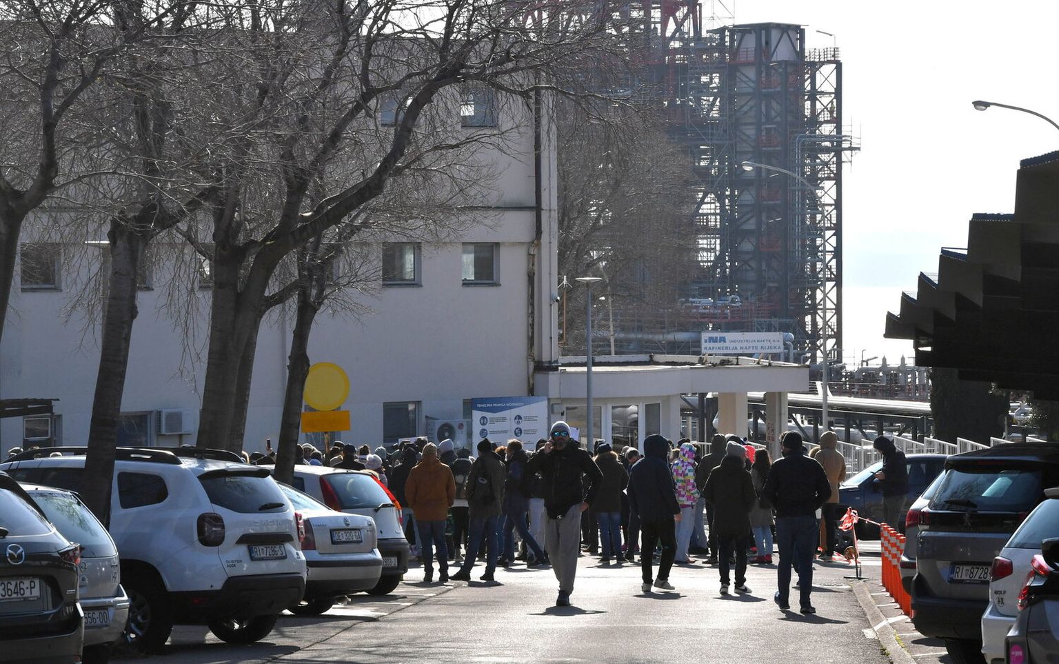 FOTO Obustavljen rad na modernizaciji riječke rafinerije: Radnici iz Rumunjske prosvjeduju zbog neisplate plaća