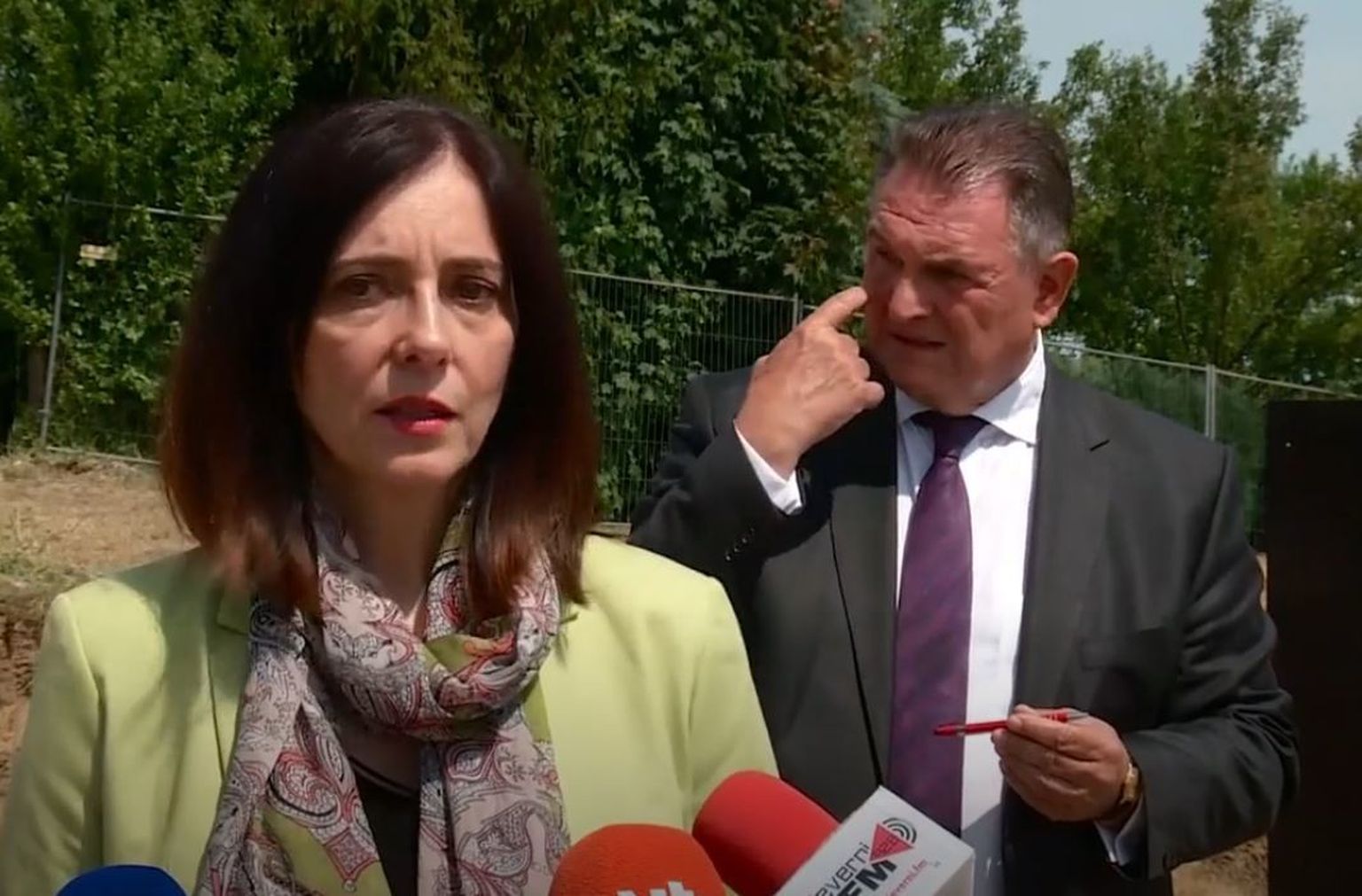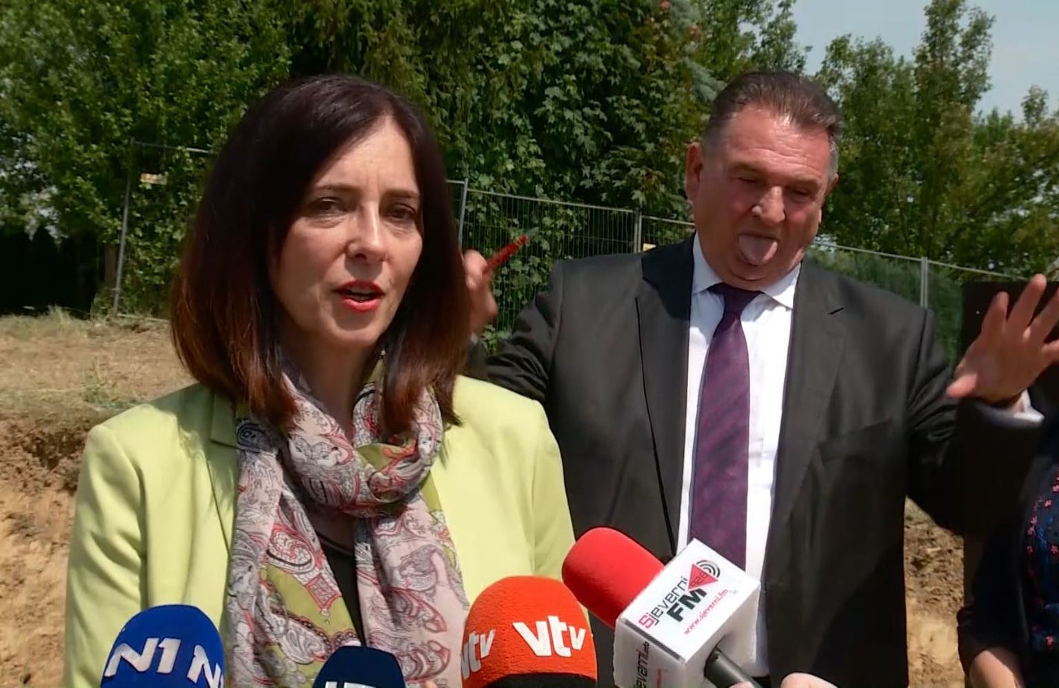 Čačićev šou iza leđa ministrice: Dok je Divjak odgovarala na pitanja novinara, Radimir Čačić je iza nje radio grimase, kolutao očima, plazio jezik i pisao po dlanu