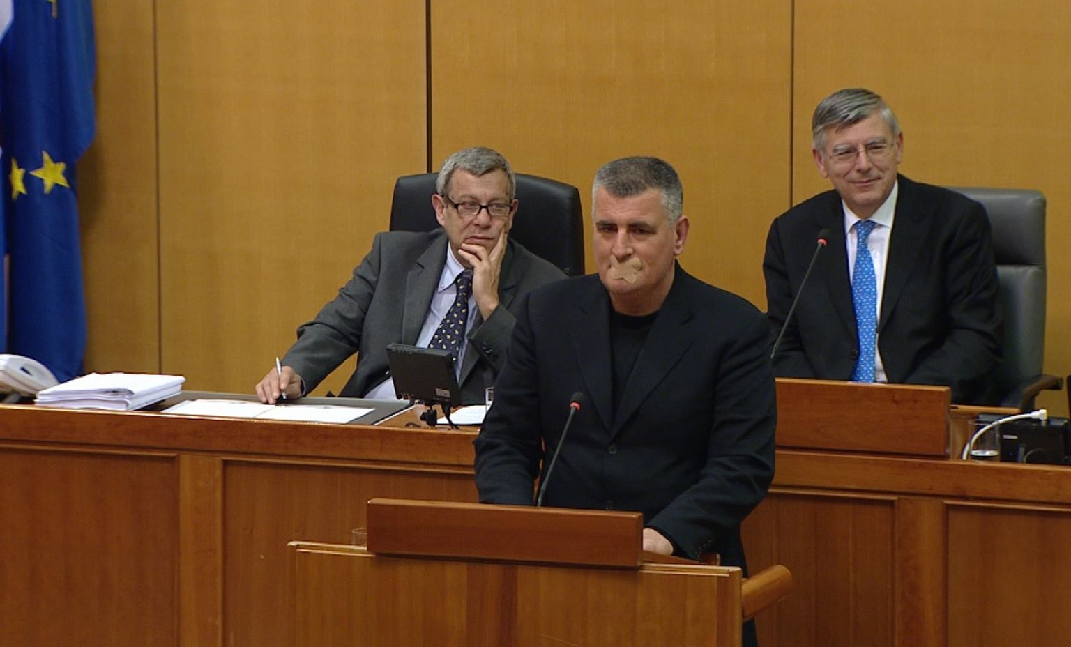 Miro Bulj zalijepio flaster na usta (Foto: dnevnik.hr) Foto: DNEVNIK.hr -