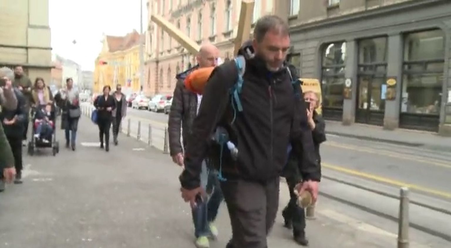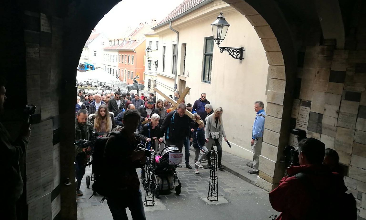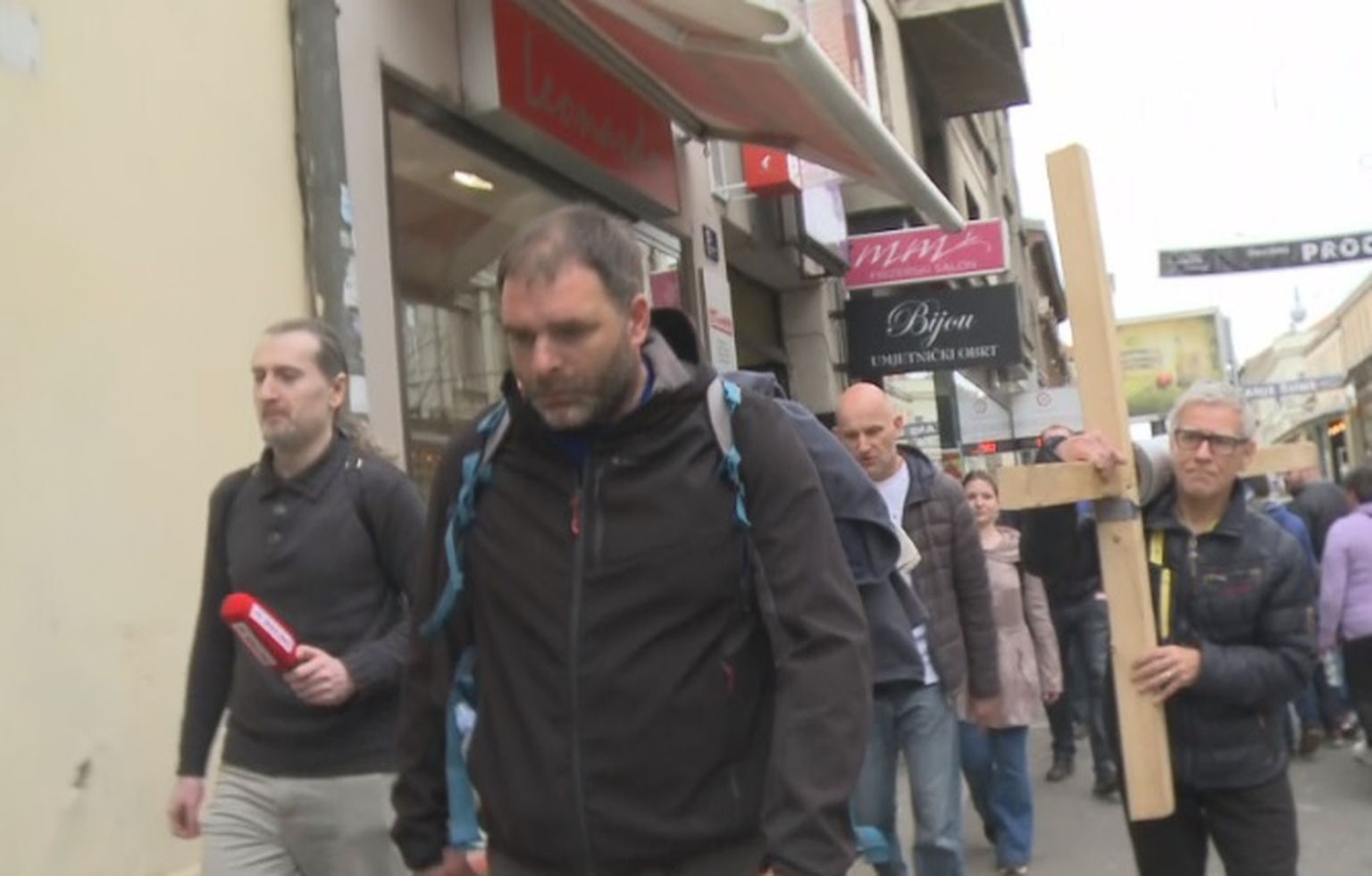 • Saša s križem ide prema Markovu trgu (Foto: dnevnik.hr) Foto: DNEVNIK.hr