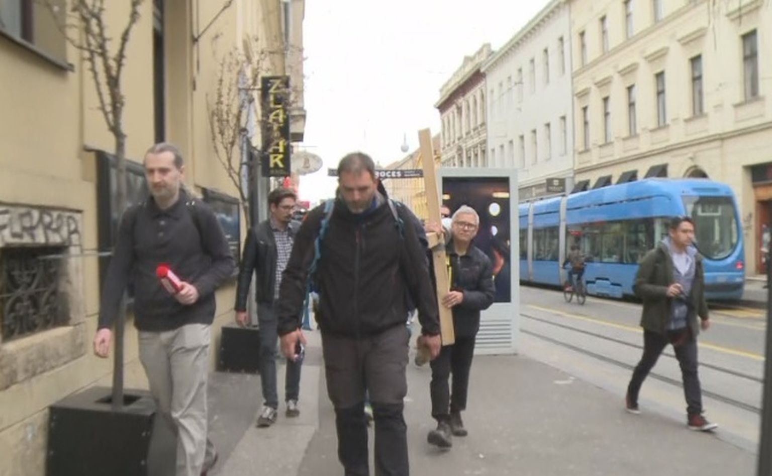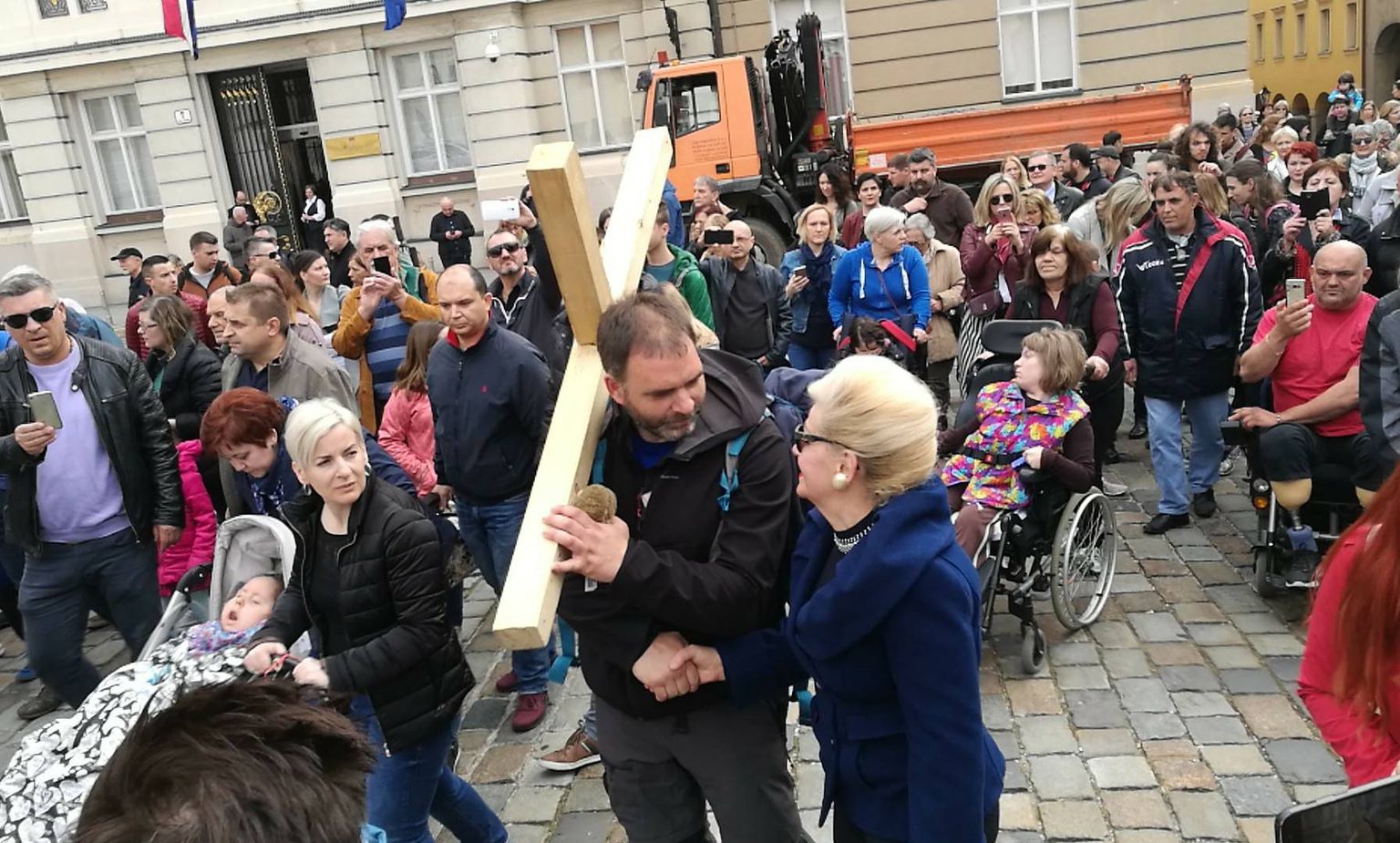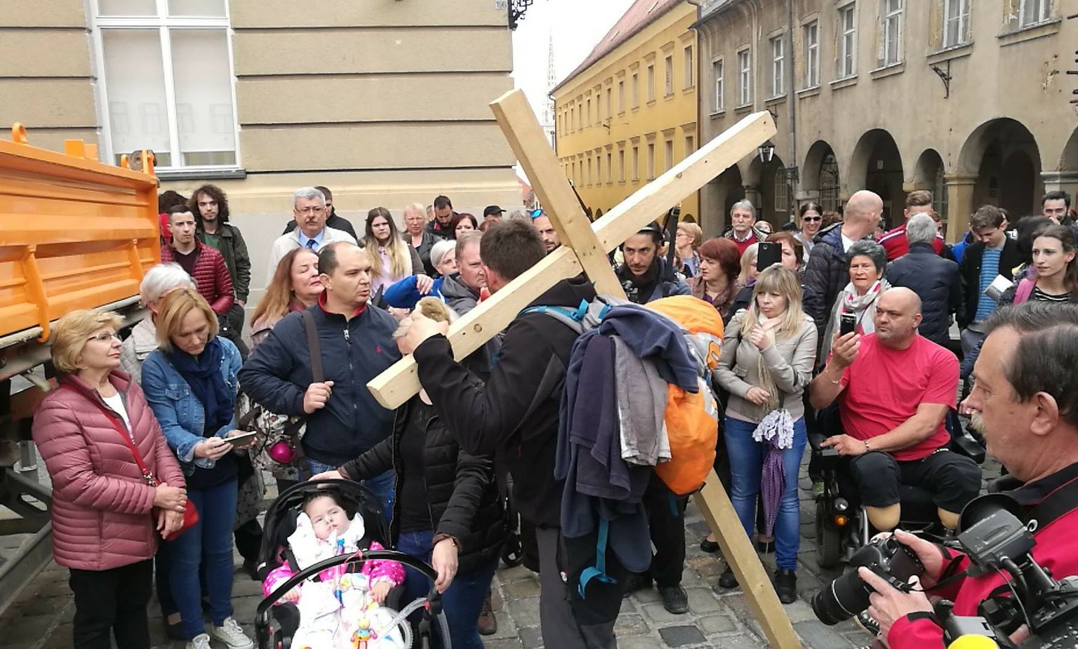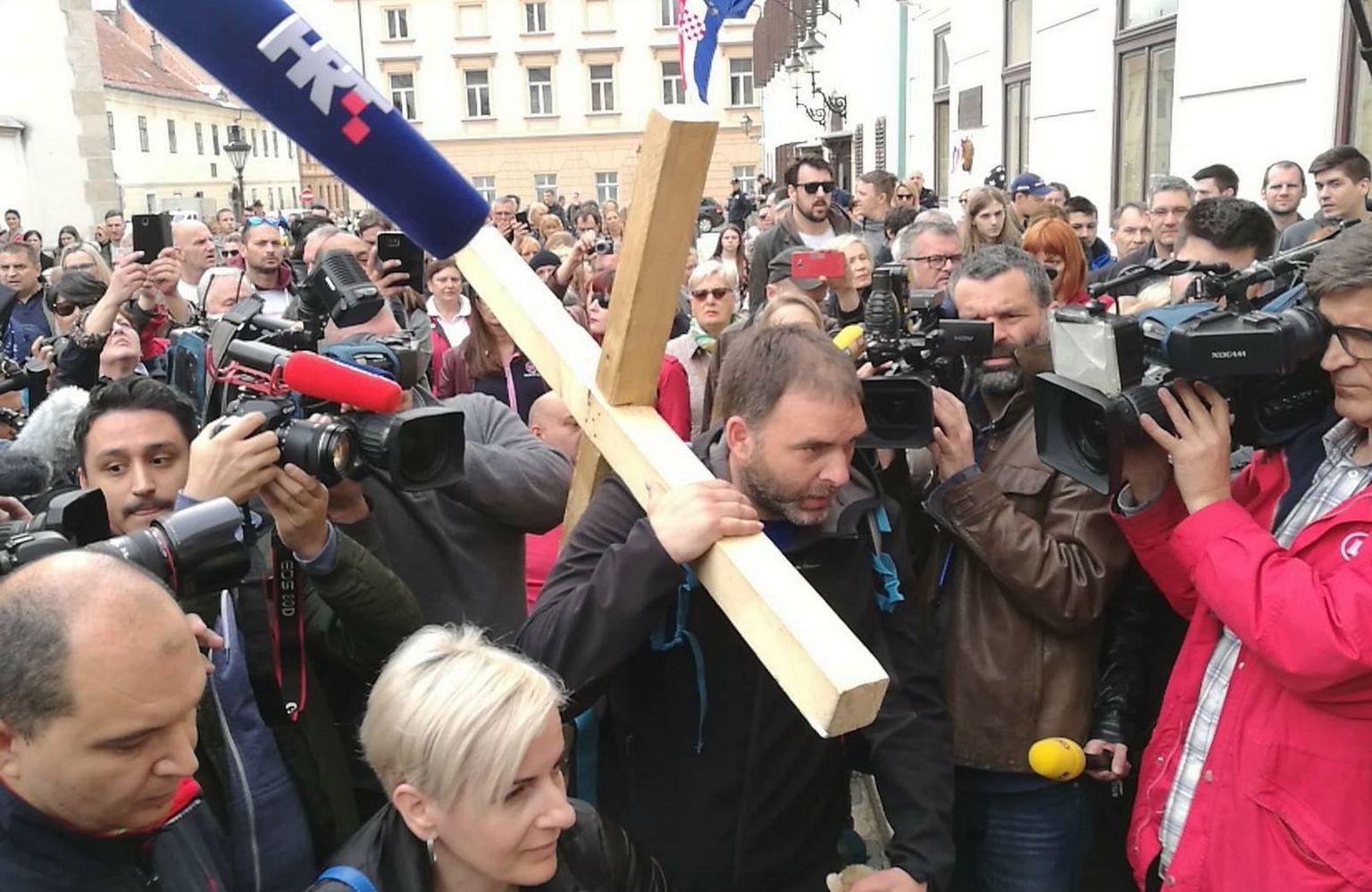 • Saša s križem ide prema Markovu trgu (Foto: dnevnik.hr) Foto: DNEVNIK.hr