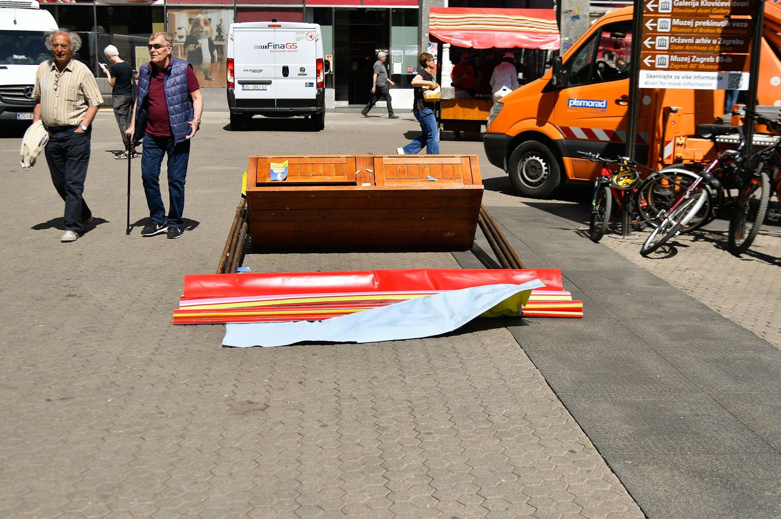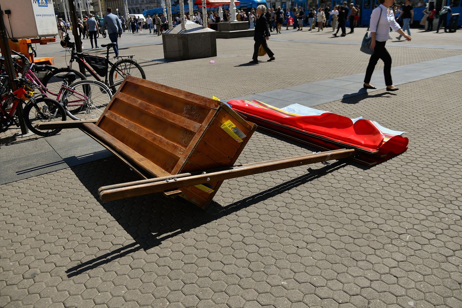 Prevrnut štand HSLS-a na Trgu bana Jelačića - 3 Foto: Lucija Očko/Cropix -