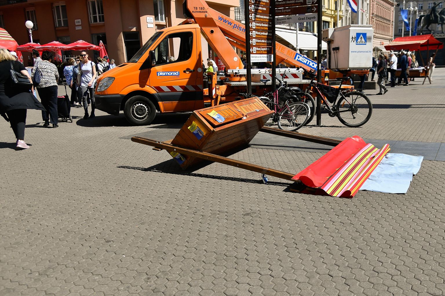 Prevrnut štand HSLS-a na Trgu bana Jelačića - 2 Foto: Lucija Očko/Cropix -