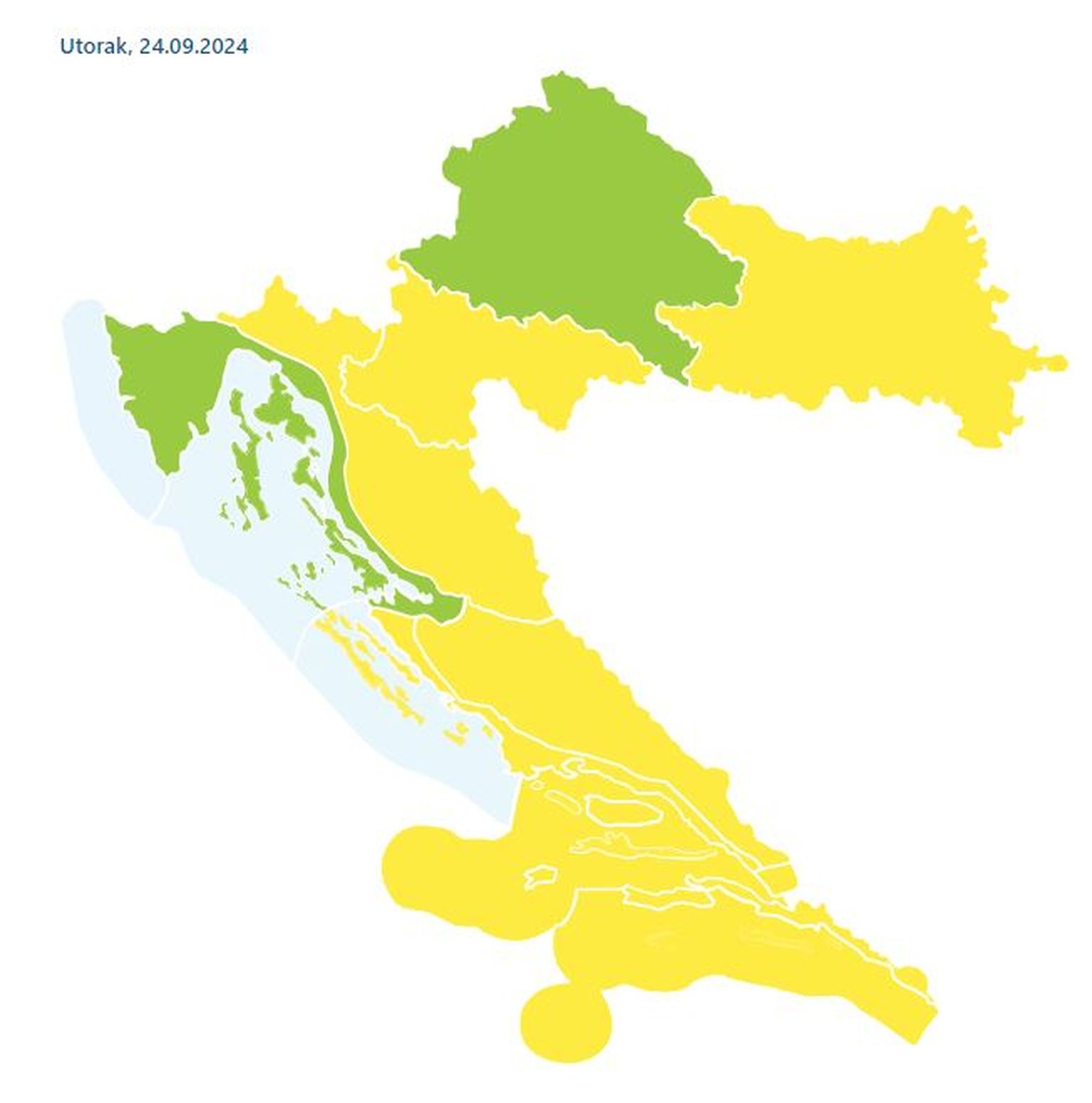 • Meteoalarm utorak Foto: DHMZ