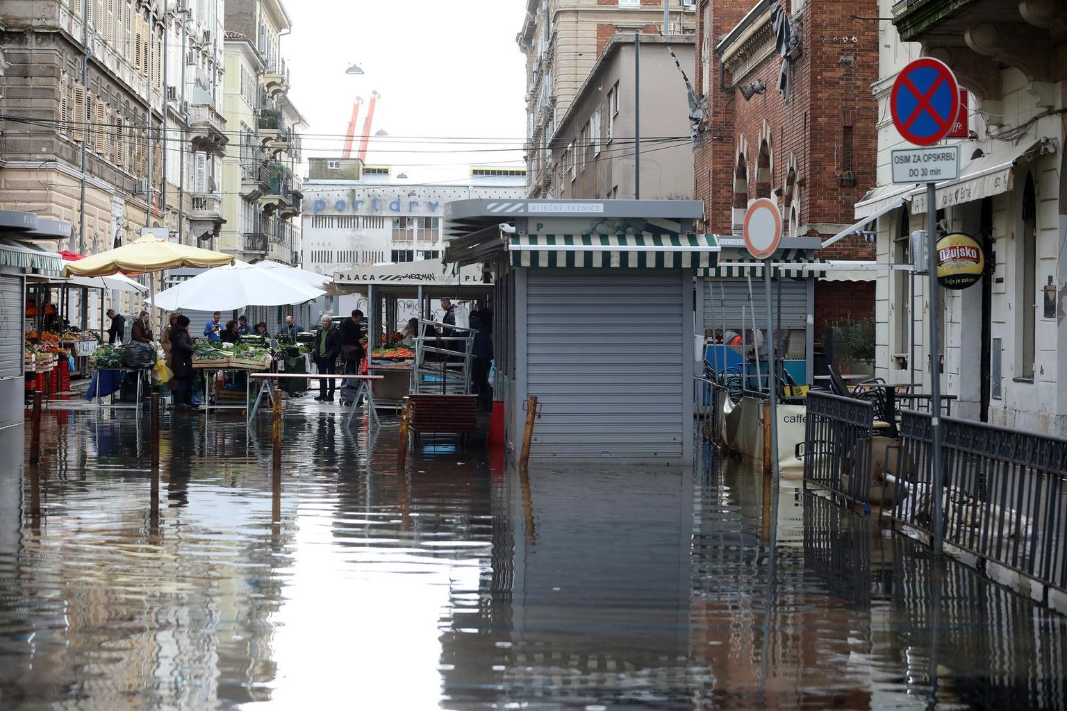 • Poplavljene ulice oko gradske tržnice u Rijeci - 2 Foto: Goran Kovacic / PIXSELL