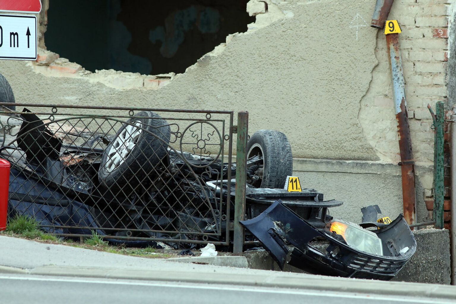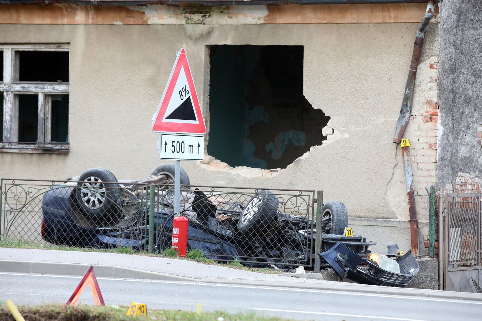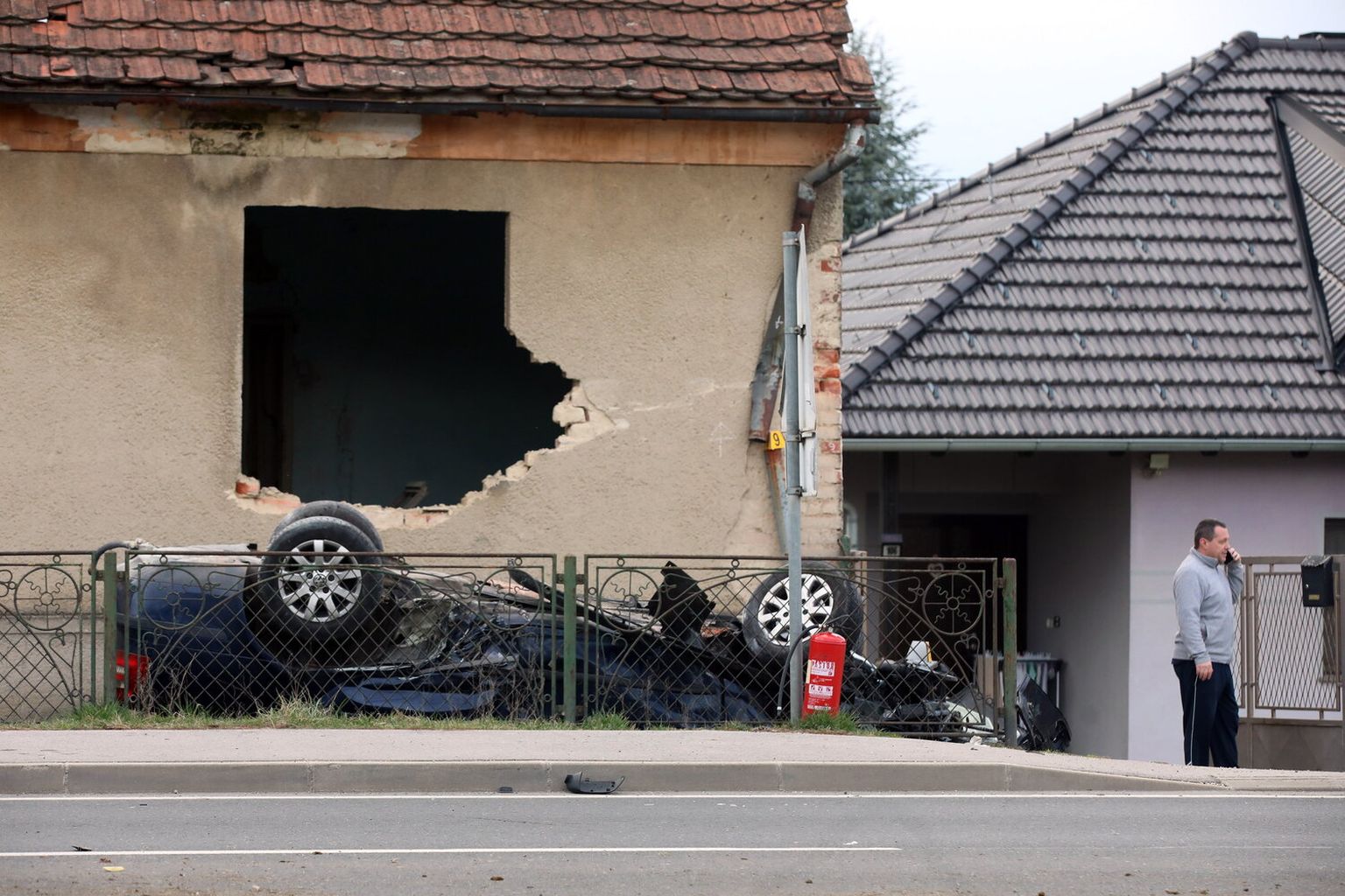 FOTO Teška prometna nesreća kod Varaždina: Uletio u dvorište kuće pa završio na krovu, ima ozlijeđenih