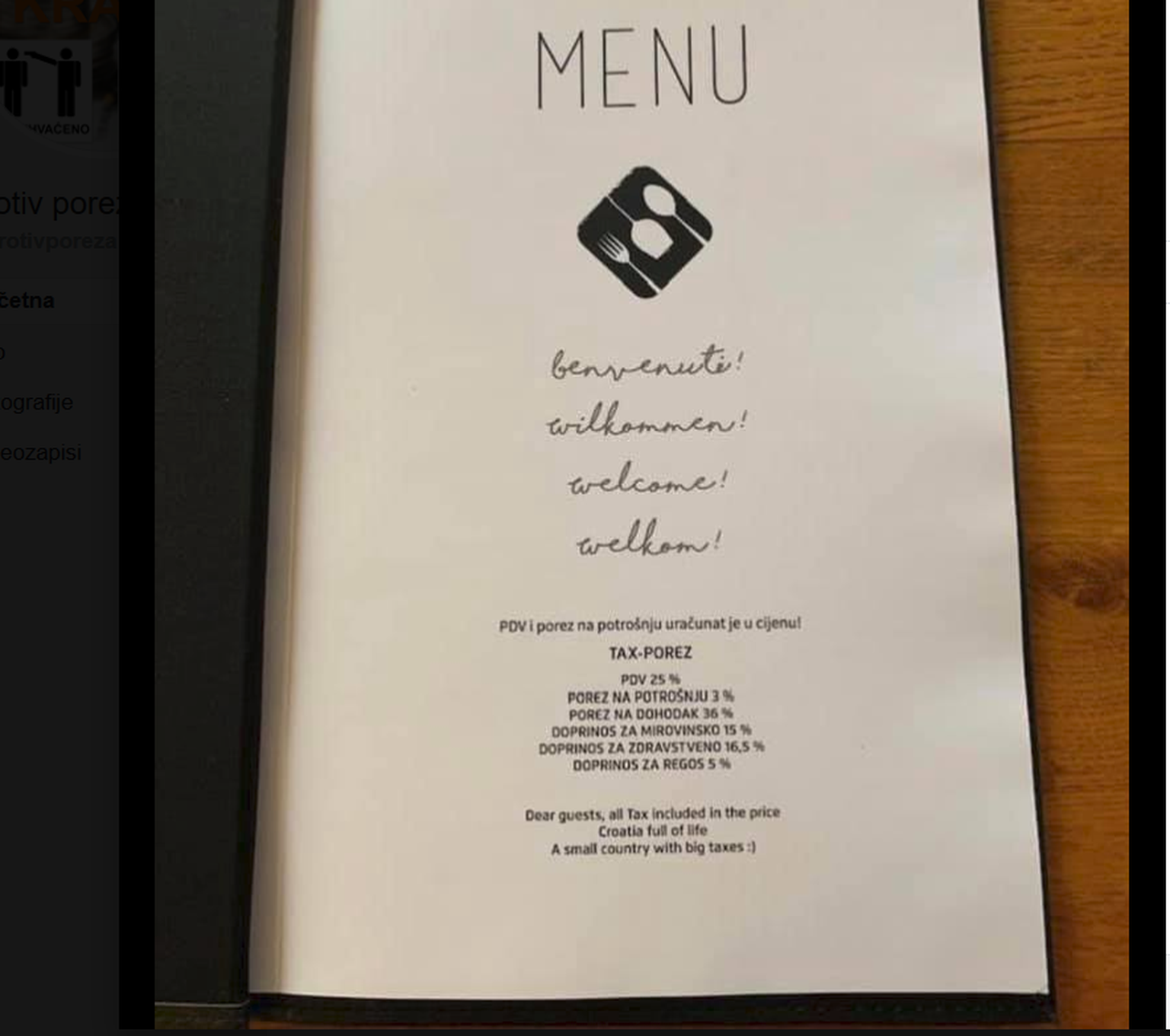 Ugostitelj na meniju objavio koje sve poreze plaća državi: "Hrvatska puna života, mala zemlja s velikim porezima"