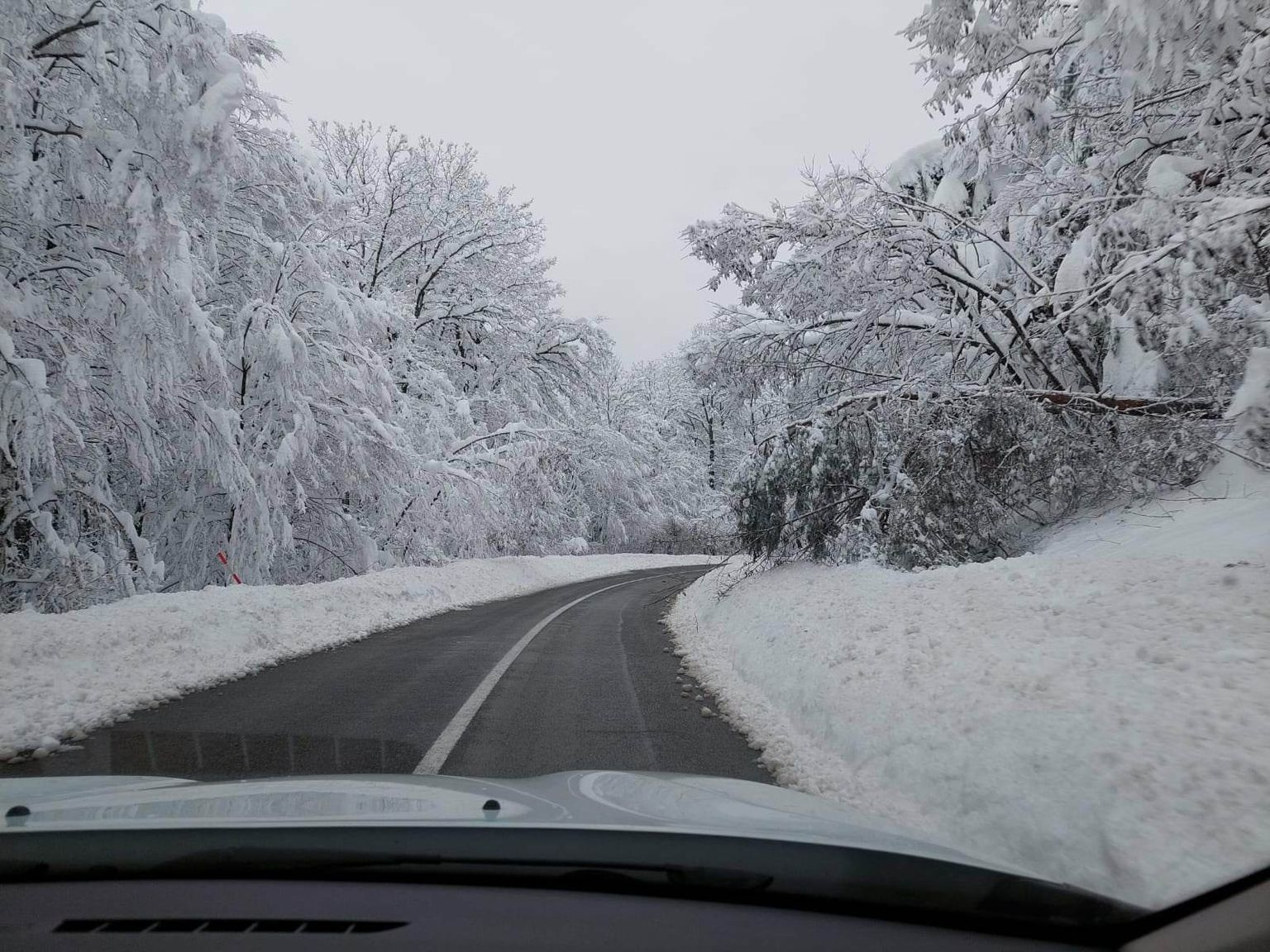 FOTO Snijeg izazvao probleme u prometu: Neke ceste još su zatvorene za dio vozila