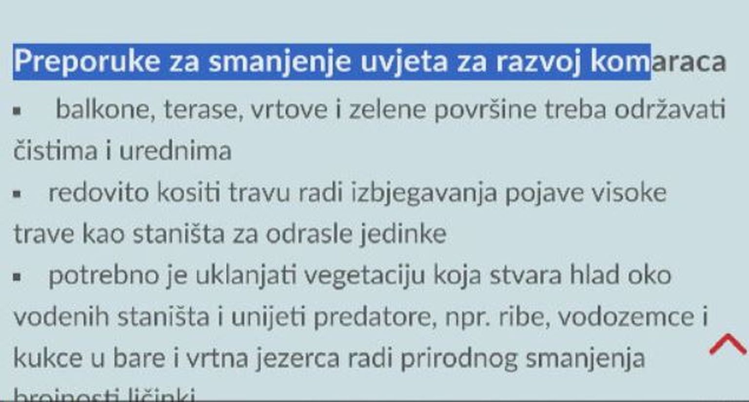 • Preporuke za smanjenje uvjeta za razvoj komaraca Foto: Dnevnik Nove TV