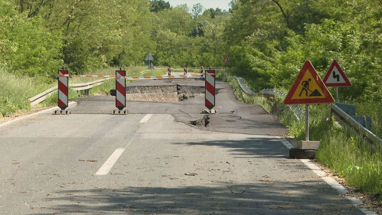 FOTO Otvorila se zemlja: Pogledajte ogromno klizište na važnoj prometnici u Slavoniji