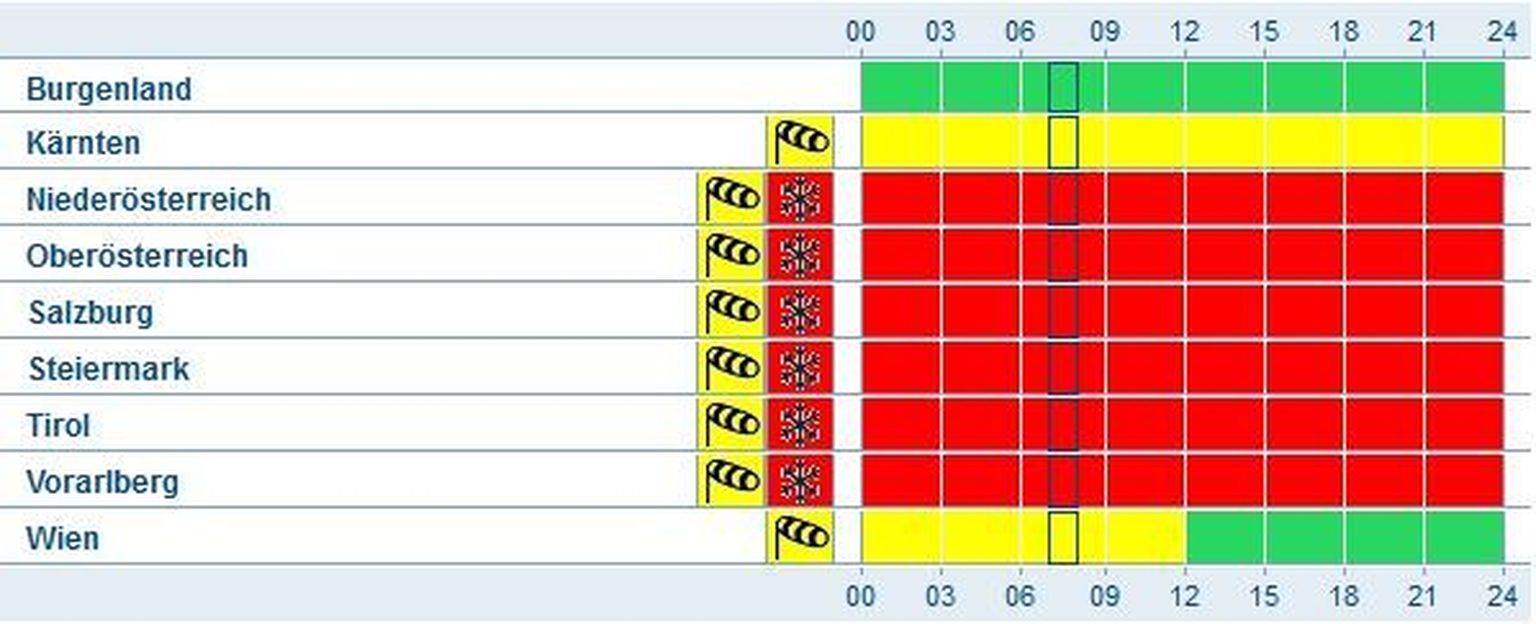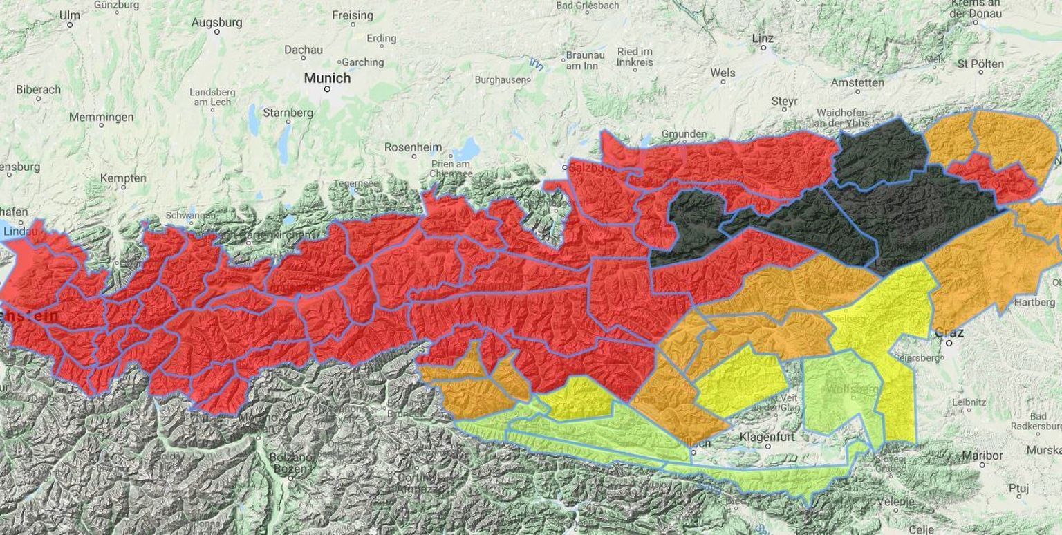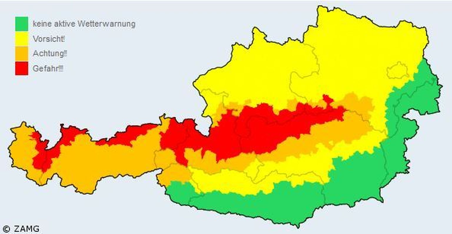 Crveni alarm u Austriji (Screenshot: ZAMG) Foto: Afp -