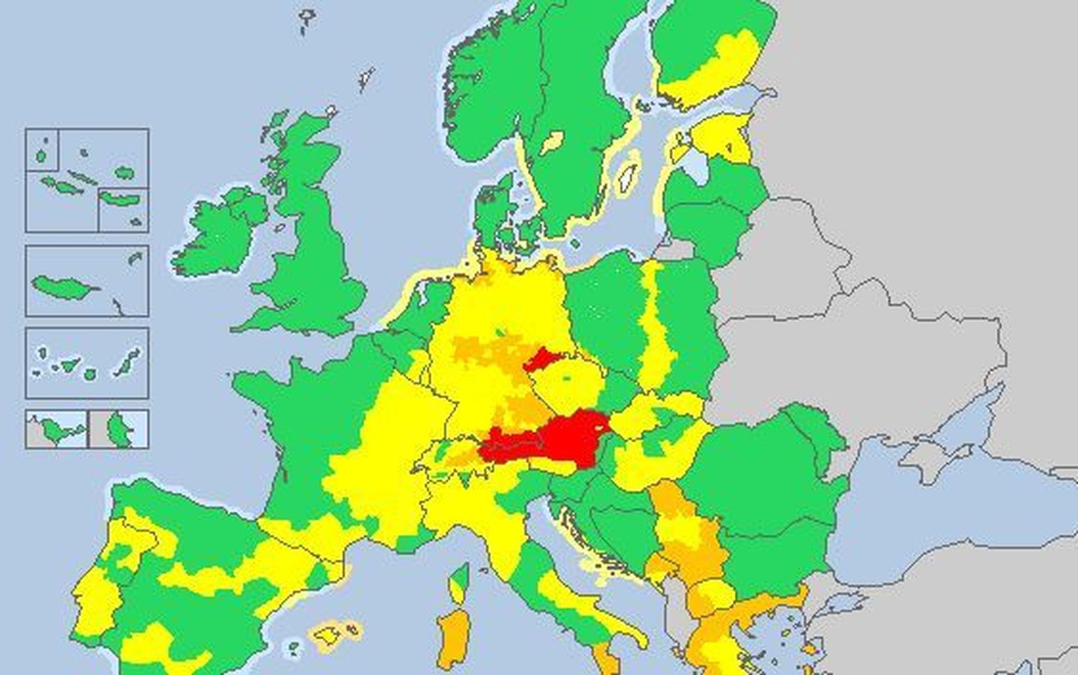 Crveni alarm u Austriji (Screenshot: meteoalarm) Foto: Afp -