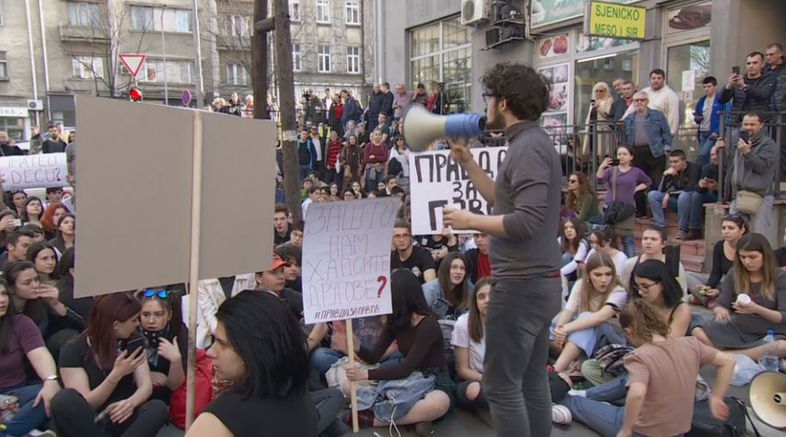 Andrija Jarak iz Beograda: U tijeku je prosvjed učenika pred policijskom stanicom, traže da puste njihove kolege