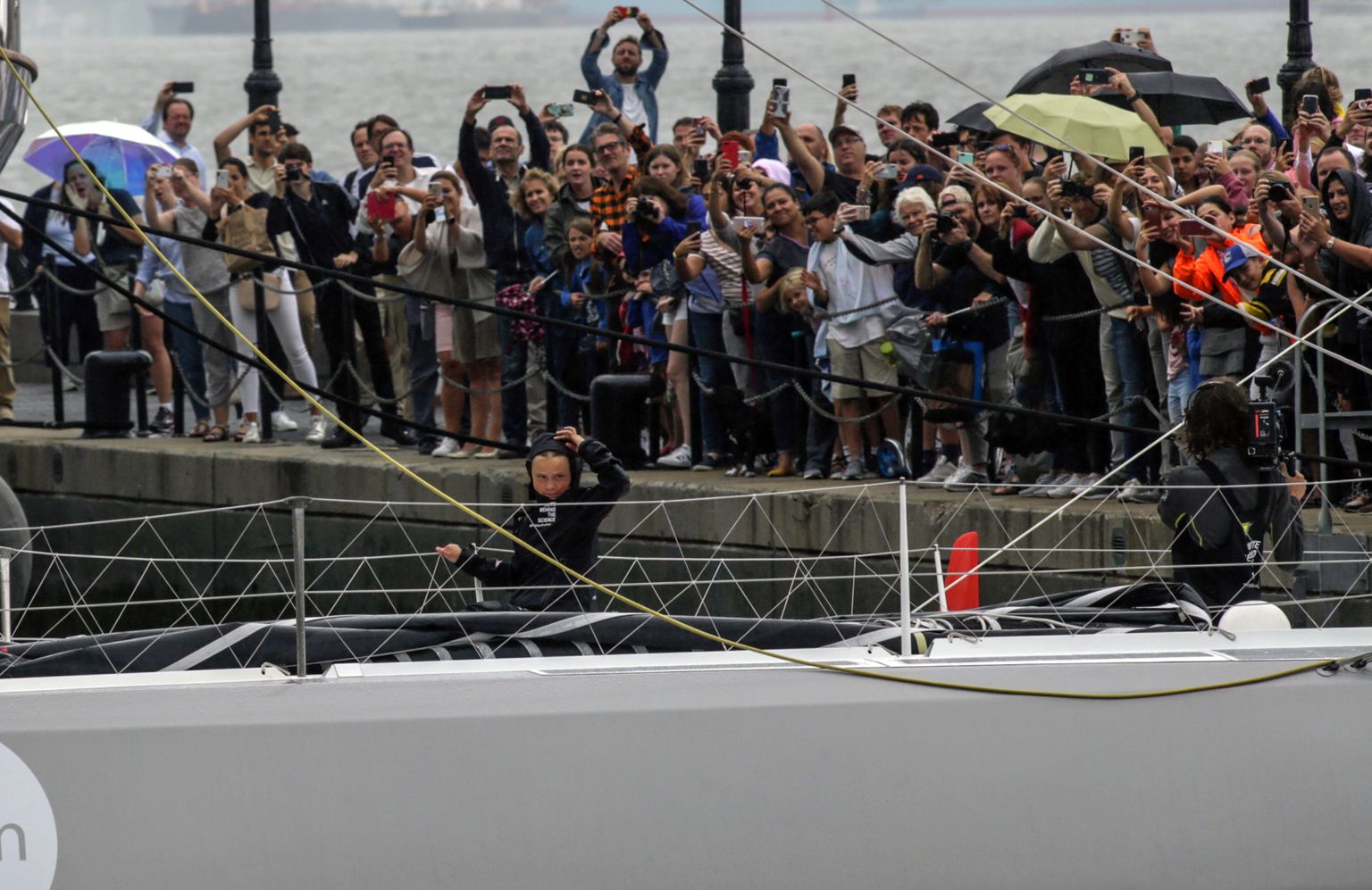 Mlada aktivistica završila petnaestodnevnu plovidbu jedrilicom (Foto: Johannes EISELE / AFP) Foto: Johannes EISELE / AFP -
