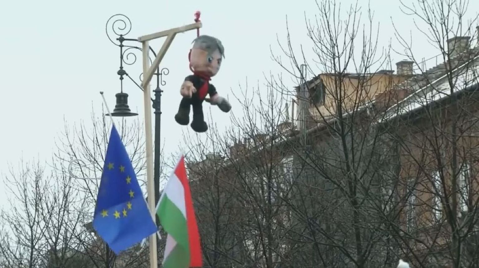 Igračka Orbana obješena na vješala dio povorke protesta u Budimpešti (Foto: Dnevnik.hr) Foto: DNEVNIK.hr -