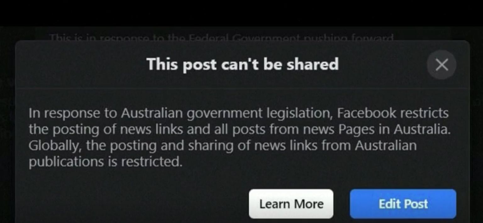 Obavijest Facebooka u Australiji Foto: DNEVNIK.hr -