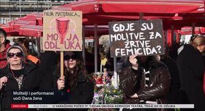 Uoči dana žena, kao i svake prve subote u mjesecu, na trgovima diljem Hrvatske okupili su se moli-telji krunice. Na središnjem zagrebačkom trgu nasuprot njima ponovno su bili prosvjednici s transparentima protiv skupa. U međuvremenu je na Cvjetnom trgu udruga Solidarna održala per-formans kojim je upozorila na rastući problem uličnog uznemiravanja žena te savjetovala načine zaštite i samozaštite.