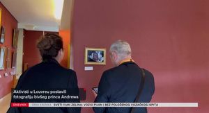 Neobični prizori stižu iz francuskog Luvra. Posjetitelje je nakratko privukla fotografija bivšeg princa Endrua. Snimljena je prije tri dana, dok je sjedio na stražnjem sjedalu automobila napuštajući policijsku postaju na dan uhićenja. Aktivisti iz protu-milijarderske skupine "Svi mrze Ilona" ispod su zalijepili i naljepnicu s natpisom: "Znoji se sada - 2026". Nakon svega 15 minuta djelatnici muzeja uklonili su fotografiju.