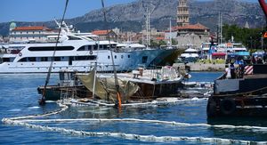 Turistički brod "Kruna mora", koji je potonuo u splitskoj luci, postaje polako turistička atrakcija. No, izvođač uvjerava kako će biti izvađen dizalicom sljedeći tjedan.