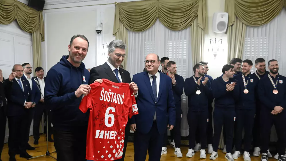 Premijer Andrej Plenković primio je rukometaše u Banskim dvorima.